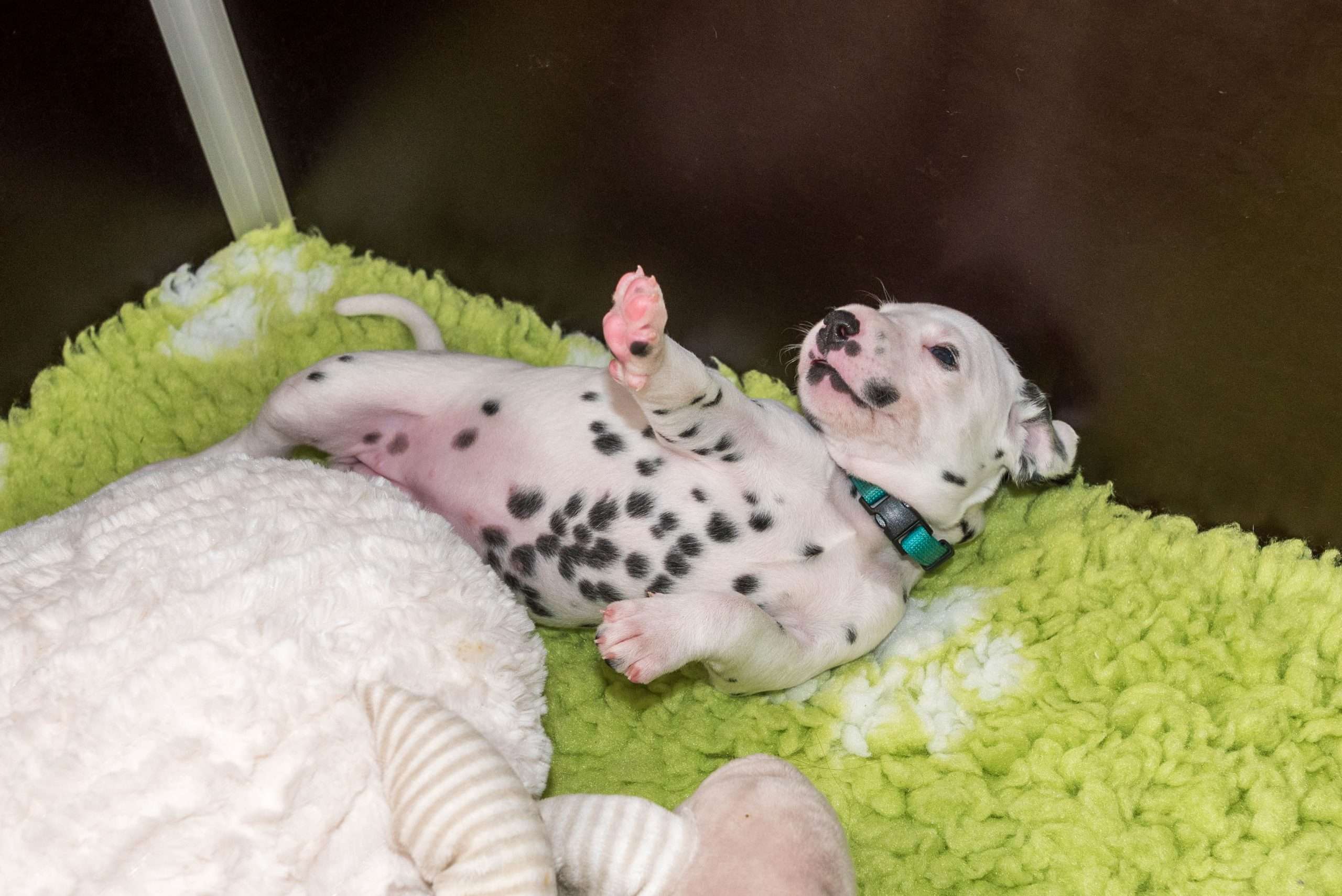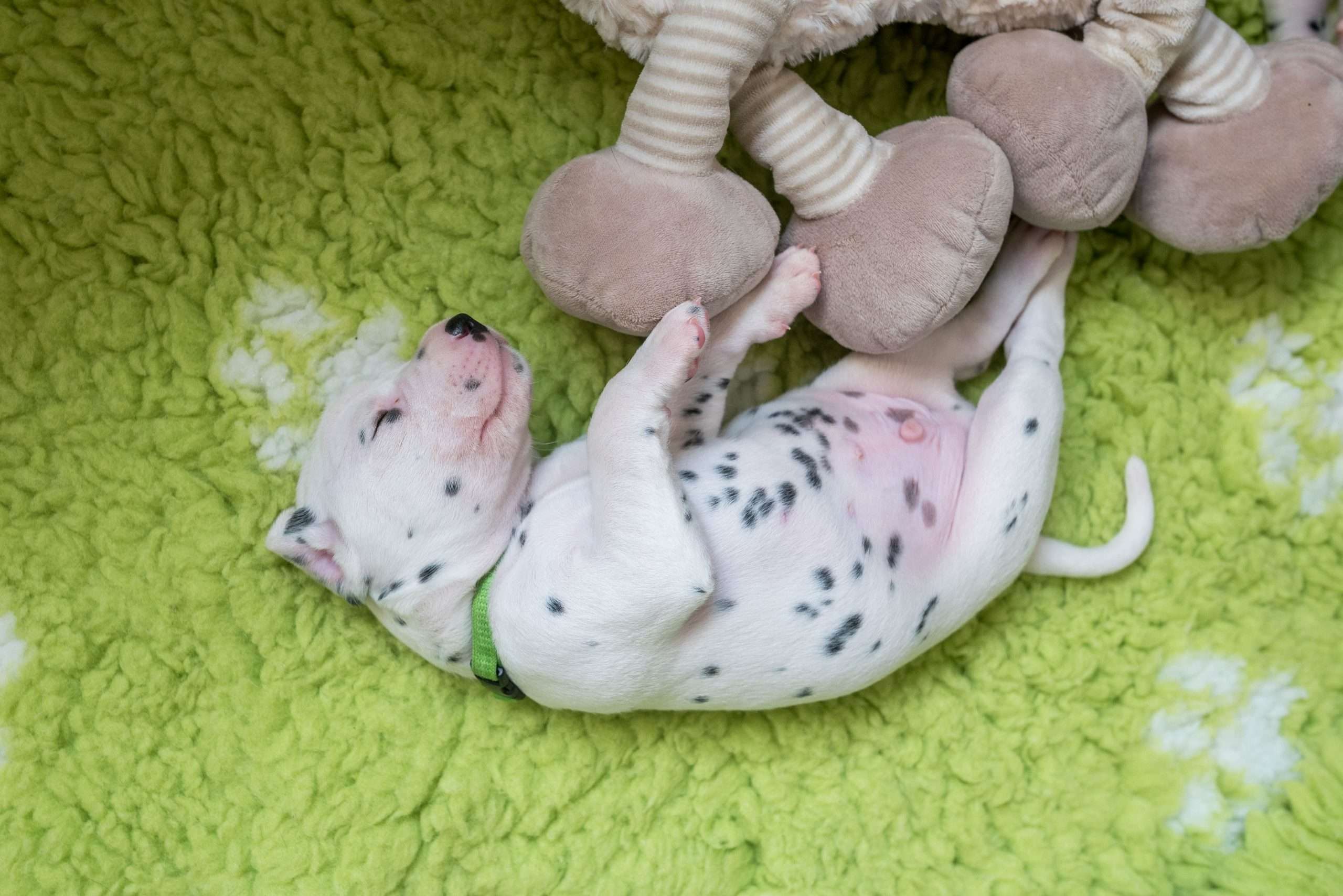 Natürlich wünscht man sich als Züchter aber für all seine Schützlinge den bestmöglichen Start in ein langes, gesundes Hundeleben. Da Alva keine Trägerin und Liston mischerbig ist, sollten statistisch die Hälfte der Speckmaden in der Genlotterie das große Los ziehen. Besonders für die Jungs freut es mich, denn Rüden sind aufgrund des anatomisch längeren und engeren Harnwegs doch häufiger von der genetisch bedingten Harngrieß-Problematik betroffen als Hündinnen.