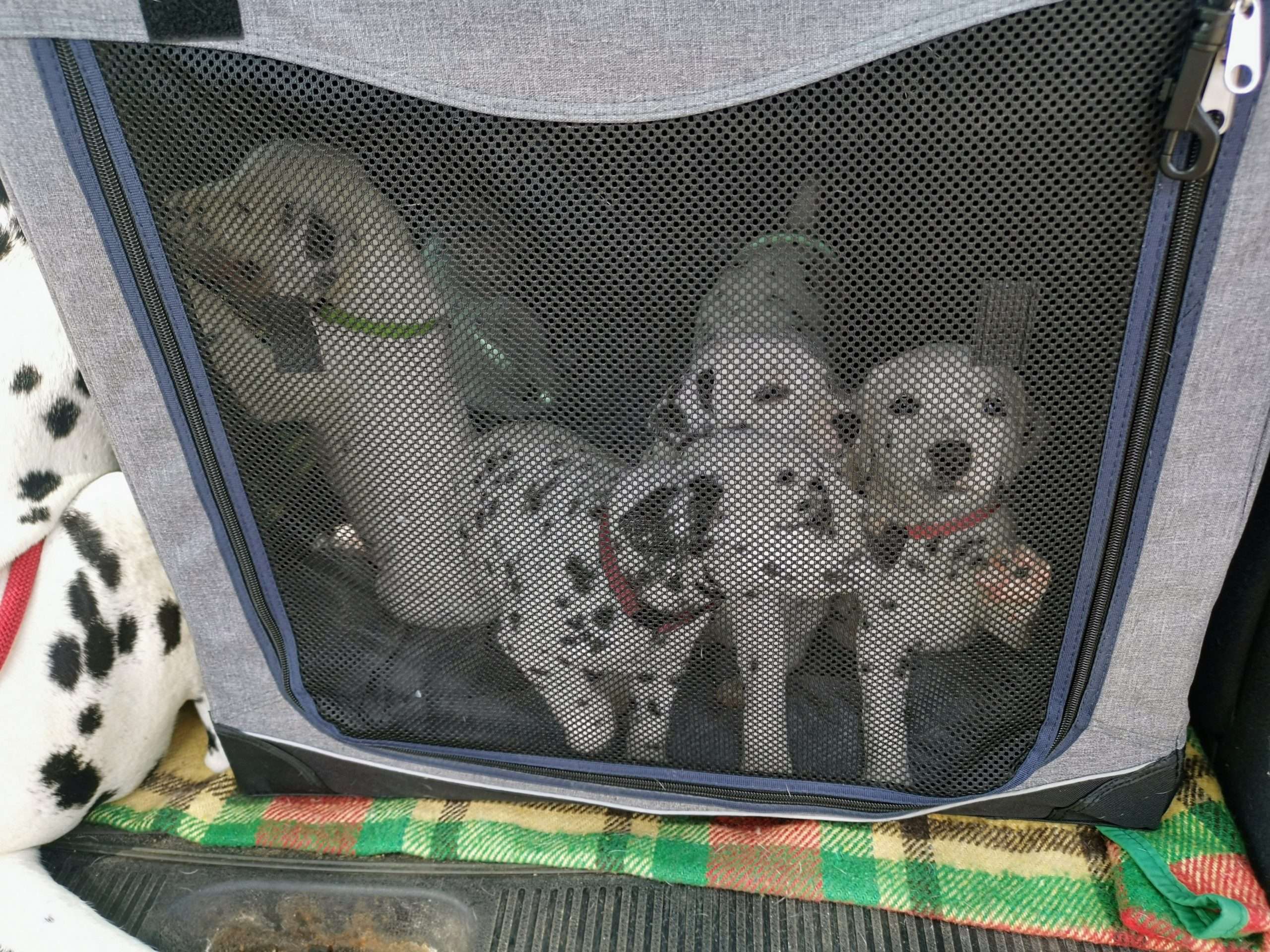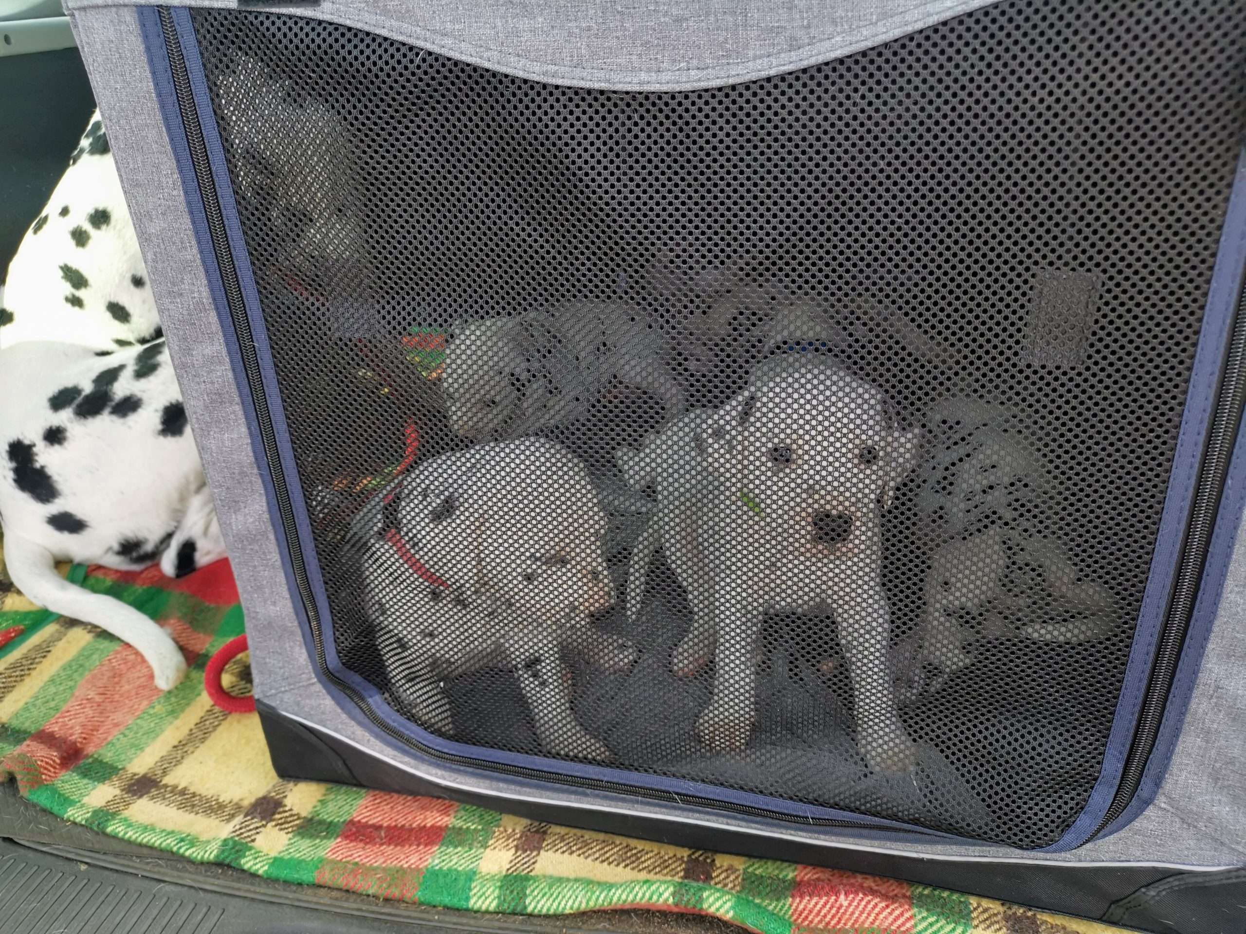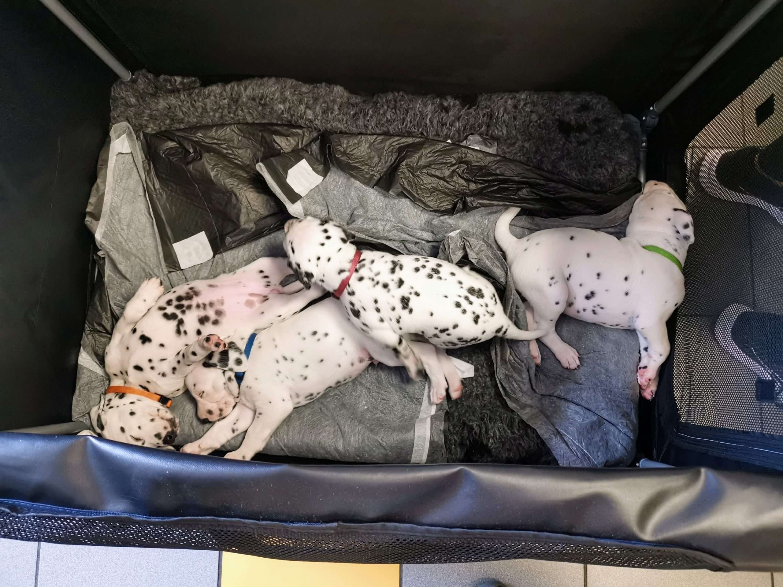 Als ich dann bei unserem geplanten Abstecher angekommen war und die Heckklappe öffnete, wollte Frau Rosa auch direkt ausbrechen und drauf los entdecken, der stets hungrige Herr Grün interessierte sich nur dafür, weshalb er denn durch ein Boxennetz von der Milchbar abgeschnitten wurde, die Damen Mint, Lila und Orange blinzelten zumindest mal neugierig mit den Augen und schnupperten mit den Nasen und Herr Blau… hat wie üblich von nichts auch nur irgendetwas mitbekommen und lieber im hinteren Boxenteil gepennt.