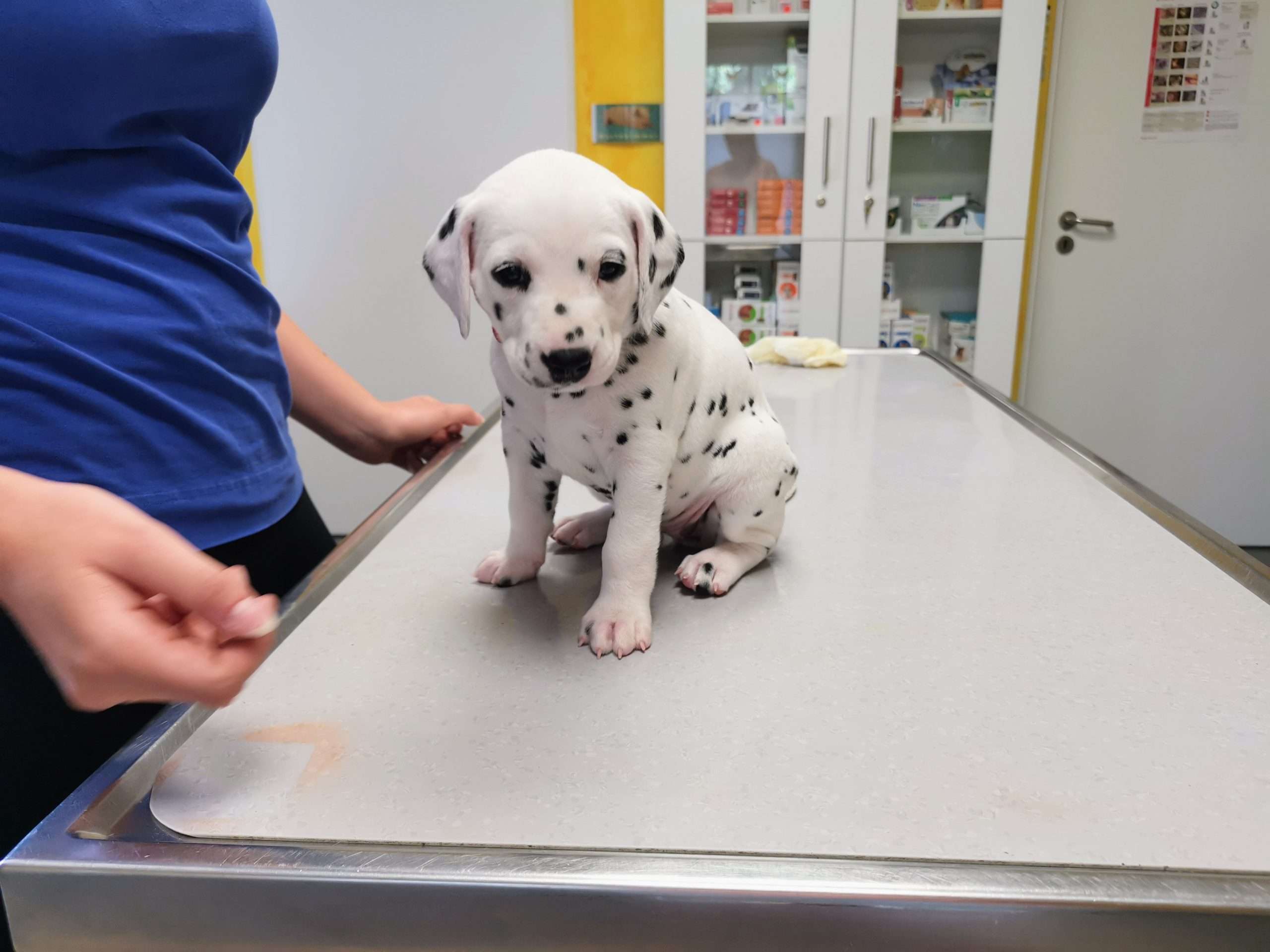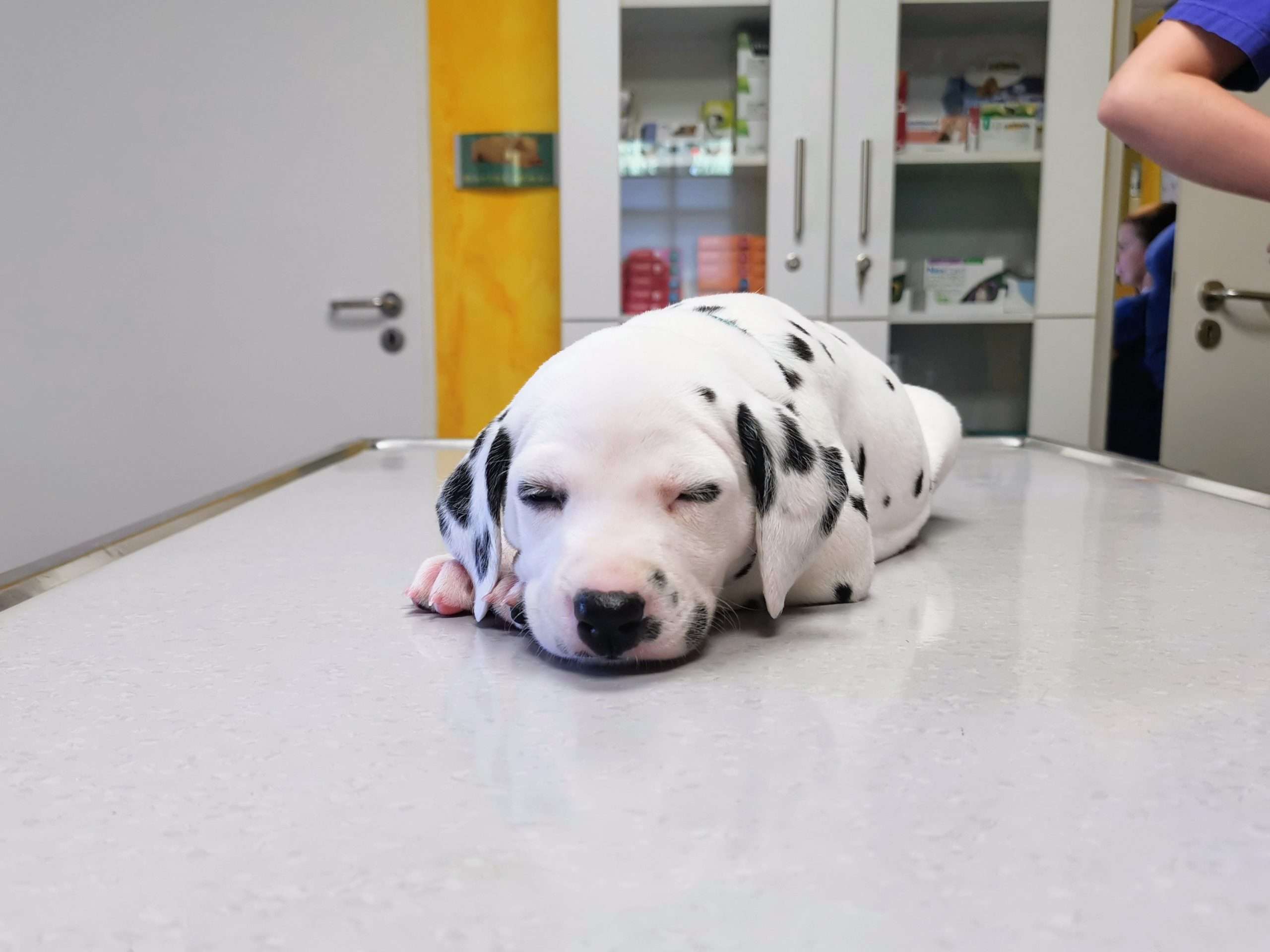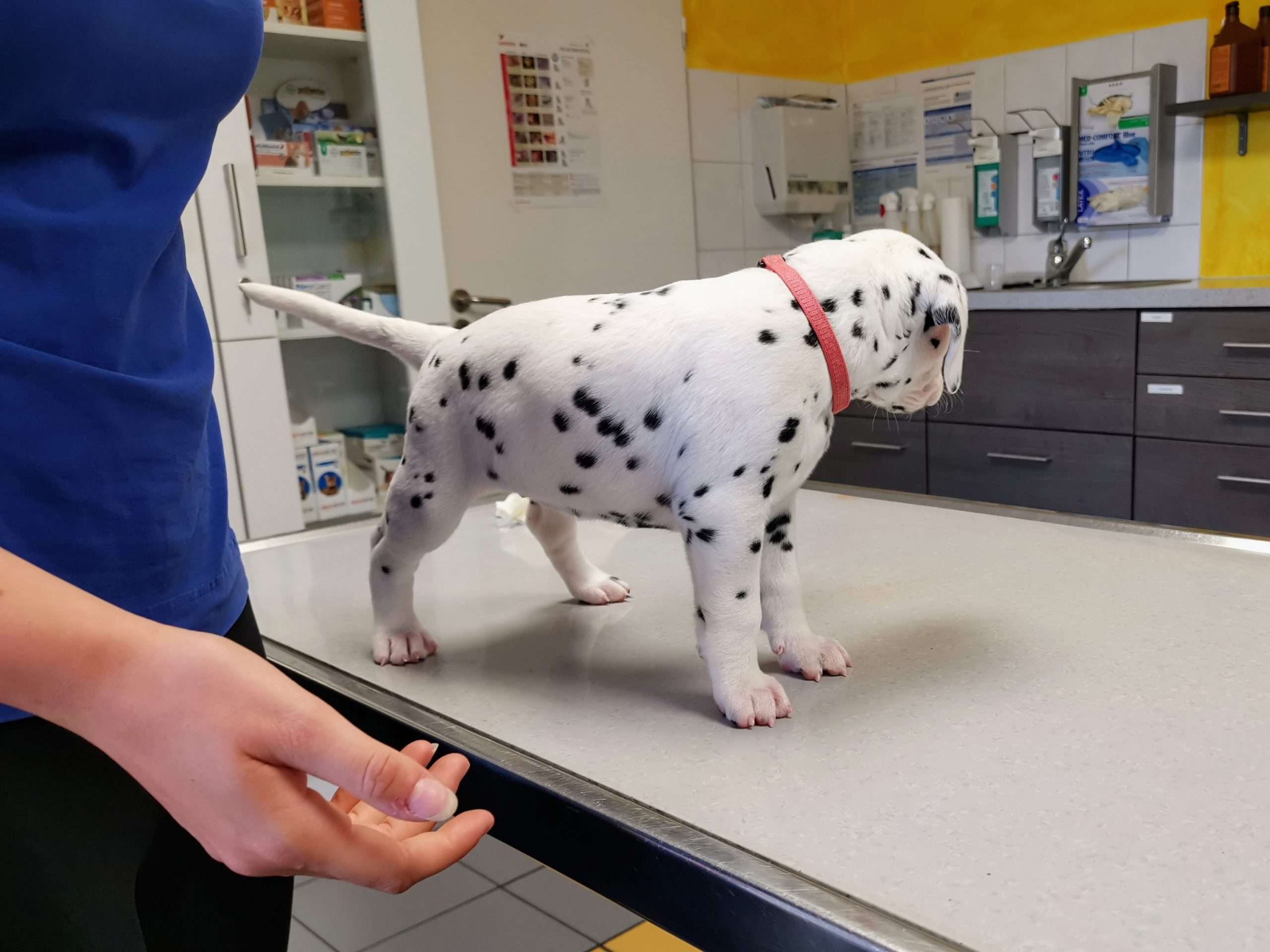 Es ging für einen Spaßbesuch zum Tierarzt! So konnten die Speckies einen ersten, ganz positiven Besuch erleben, bei dem sich für jeden Einzelnen viel Zeit genommen, reichlich geknuddelt und spielerisch untersucht wurde. Ich empfinde es als vorteilhaft, wenn die Kleinen diese ganz entspannte und ruhige Erfahrung machen dürfen. Arztpraxen in vollem Betrieb können ja doch etwas beängstigend wirken und nicht immer ist die Behandlung ein tolles Erlebnis. Mit diesem ersten Besuch, in dem ausschließlich Positives passierte und Mama am Alva völlige Unaufgeregtheit signalisierte (so oft kommt es für sie ja auch nicht vor, dass es bei ihrem Tierarztbesuch nicht um sie geht), versuche ich späterem Stress ein wenig vorzubeugen. Besonders Frau Rosa, die sich ja schnell langweilt, gefiel es oben auf dem Untersuchungstisch ganz besonders. Frau Mint ist sogar direkt dort eingedöst bei den vielen Streicheleinheiten. Grün, Blau und Orange waren eh die Ruhe selbst, schliefen in den herrlichsten Posen und auch Frau Lila beruhigte sich ganz fix, nachdem sie protestiert hatte, weshalb sie denn erst als Dritte die Sonderluxusextraaufmerksamkeit der Tierarzthelferinnen bekam. So ganz nebenbei gab es für mich die Bestätigung, dass sich alle bestens entwickeln, einen hervorragenden Gesamteindruck machen und das ganze Praxisteam begeistert haben. Ich bedanke ich mich ganz herzlich bei dem lieben und einfühlsamen Mädels am Weinberg für diese Möglichkeit und perfekte Erfahrung.