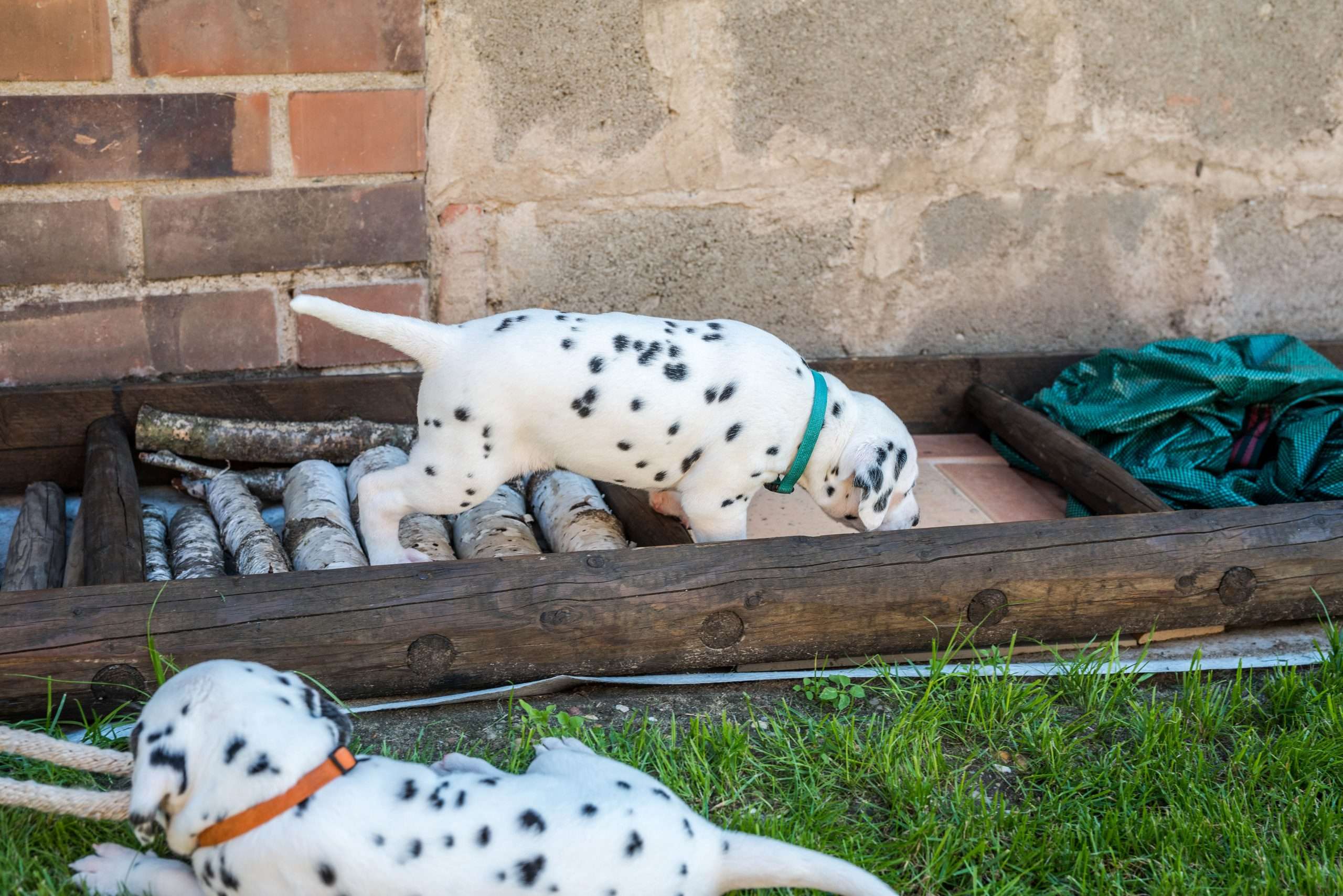 Und zur Krönung des Tages war heute Dixis Bruder mit seinen lieben Menschen zu Besuch (er ist natürlich auch Alvas Sohn und Elses Halbbruder, aber für mich ist er immer irgendwie „Dixis Bruder“). Es war so schön, dass ihr da wart! Rüden sind bekanntlich die besten Erzieher und Diego hat dieser Behauptung alle Ehre gemacht. So wundervoll geduldig, sanft und aufgeschlossen hat der kleine Kasper mit den Speckmaden herumgehampelt. Besonders Herr Grün konnte schonmal einen Blick in seine optische Zukunft werfen, denn sein hübscher großer (Halb-)Bruder schaut ihm sehr ähnlich.