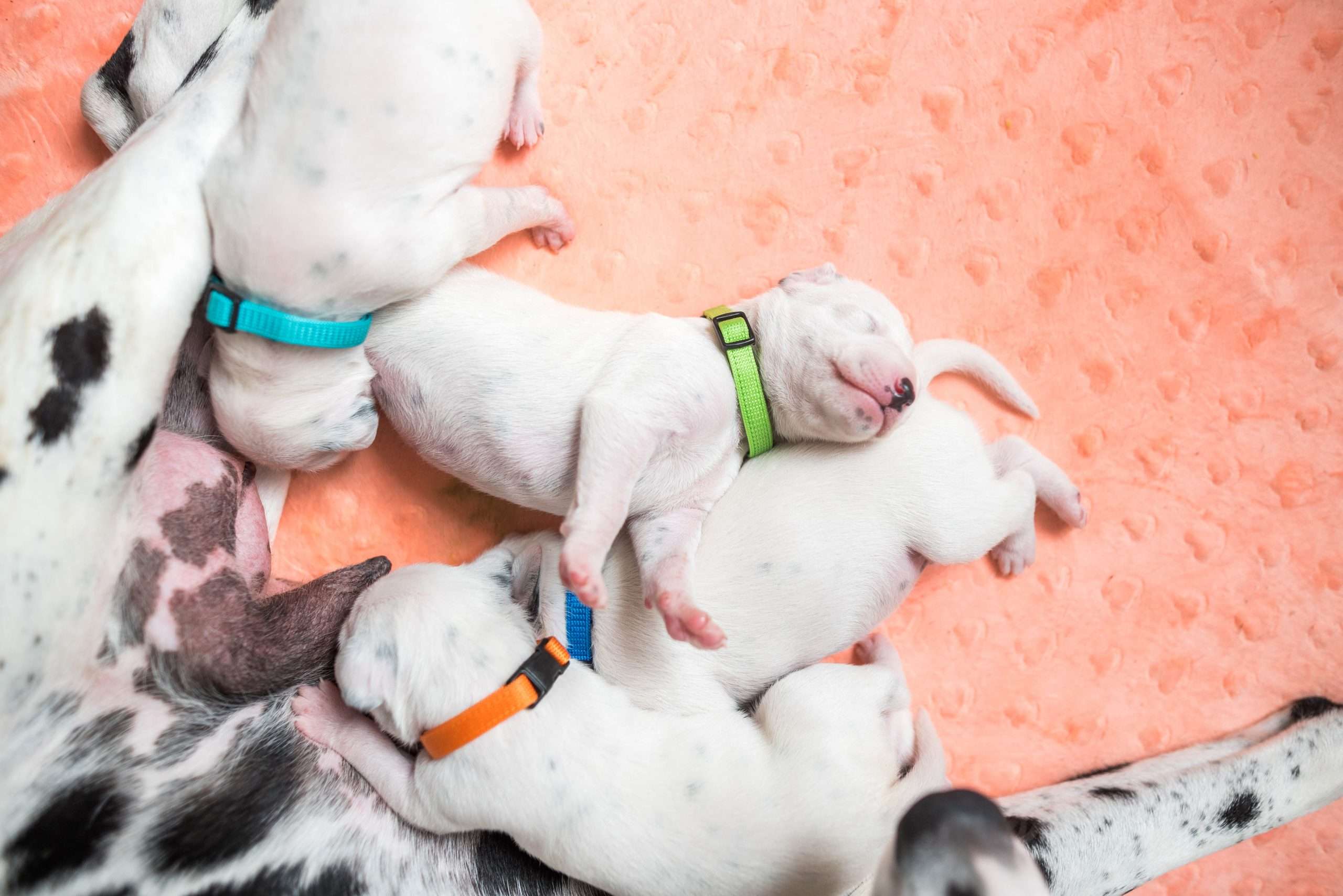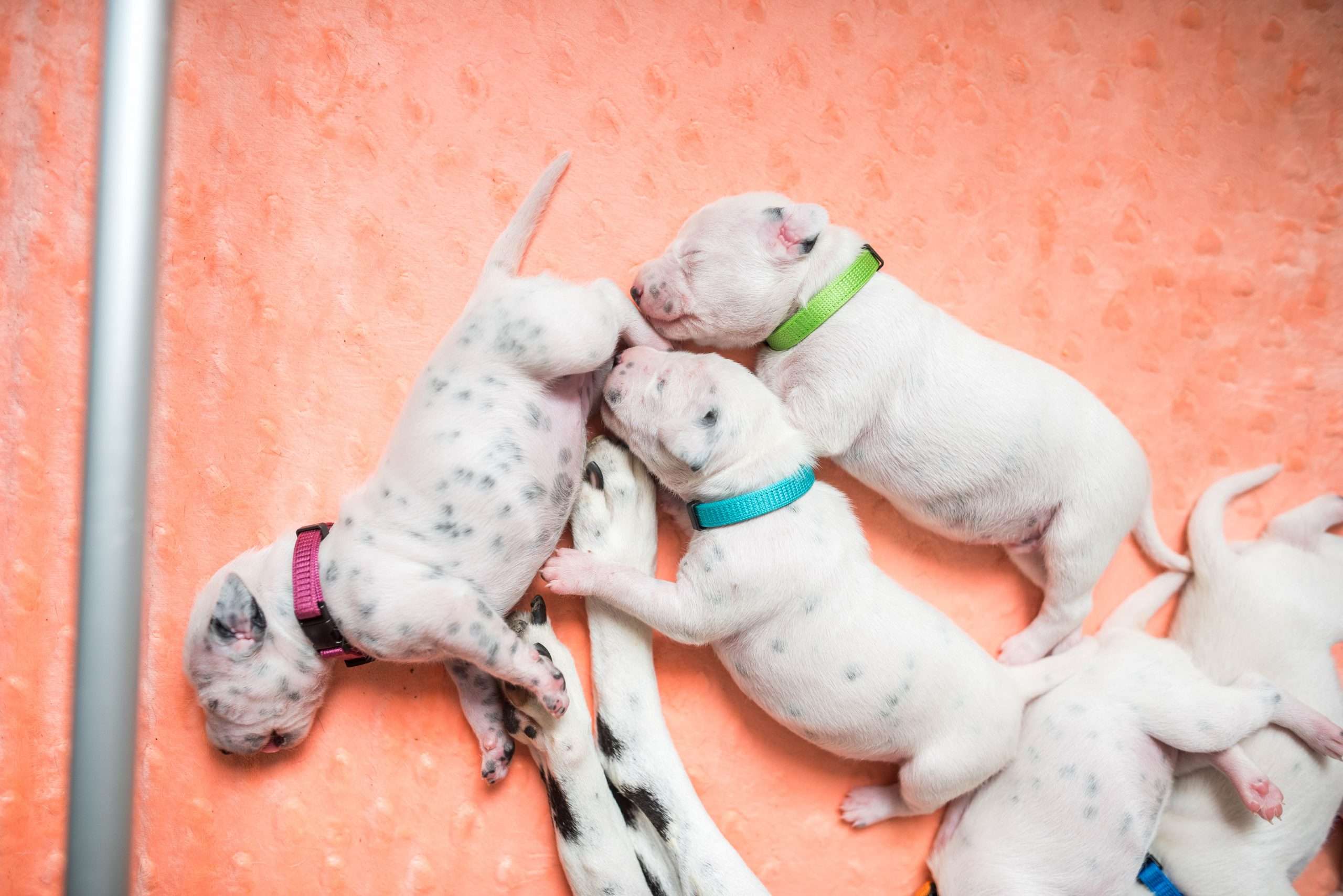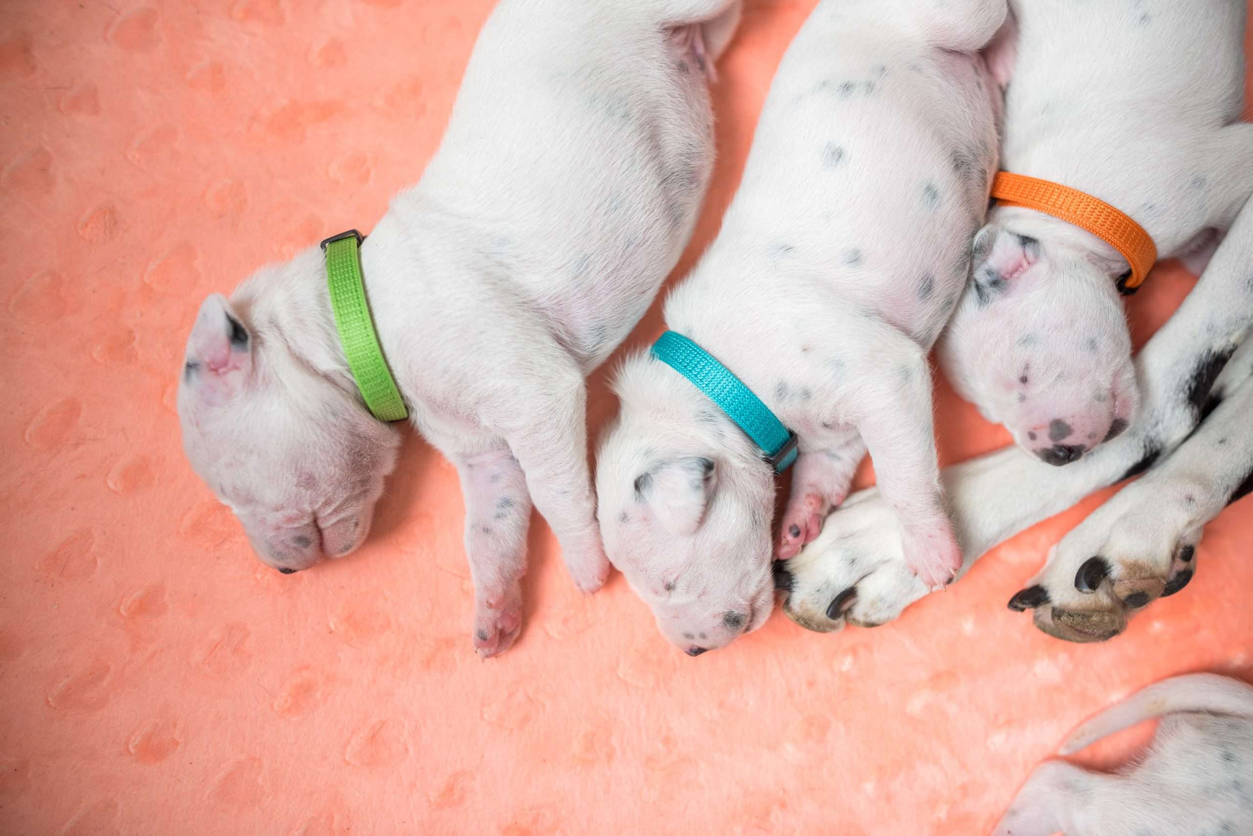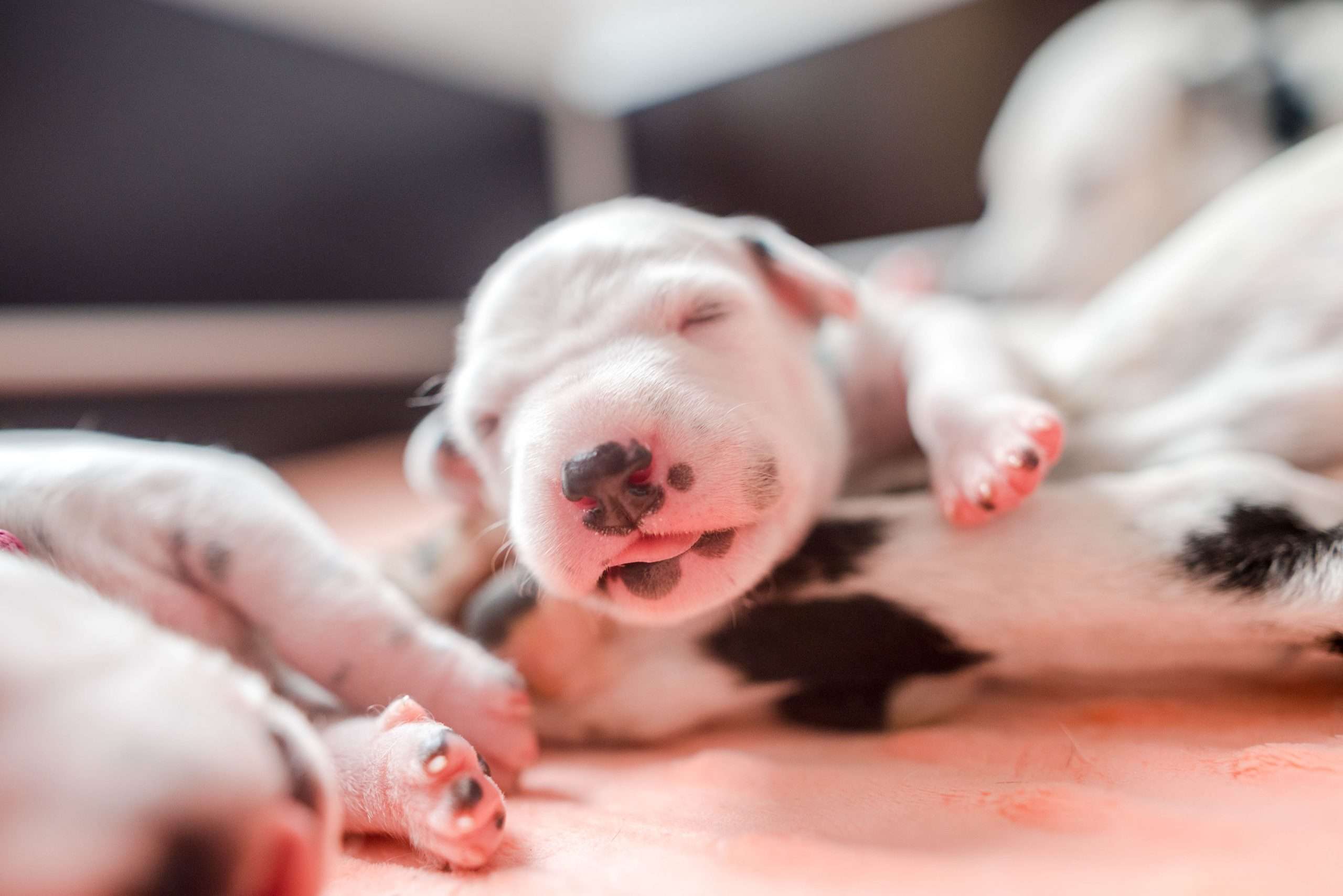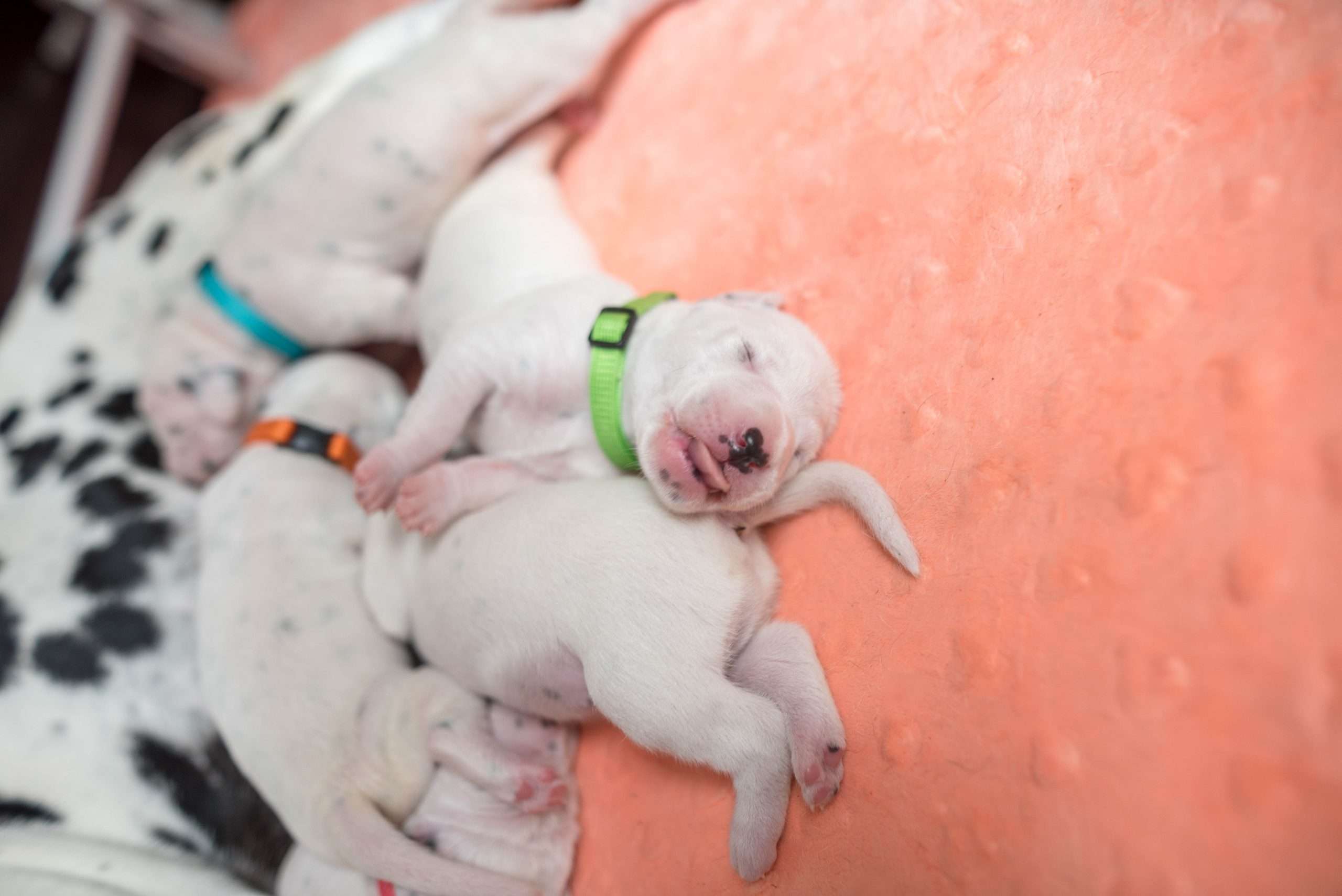 Hach, Welpe müsste man sein. Mit dickem Kugelbauch im Milchkoma satt und zufrieden schlummern. Es ist zuckersüß zu sehen, wie es in der ganzen Wurfbox zuckt und wackelt, hier mal ein Beinchen, da mal ein Öhrchen und ganz viel verträumtes Nuckeln. Und erst diese Geräusche dazu! Und diese kleinen heraushängenden Zungen. Zu goldig!
