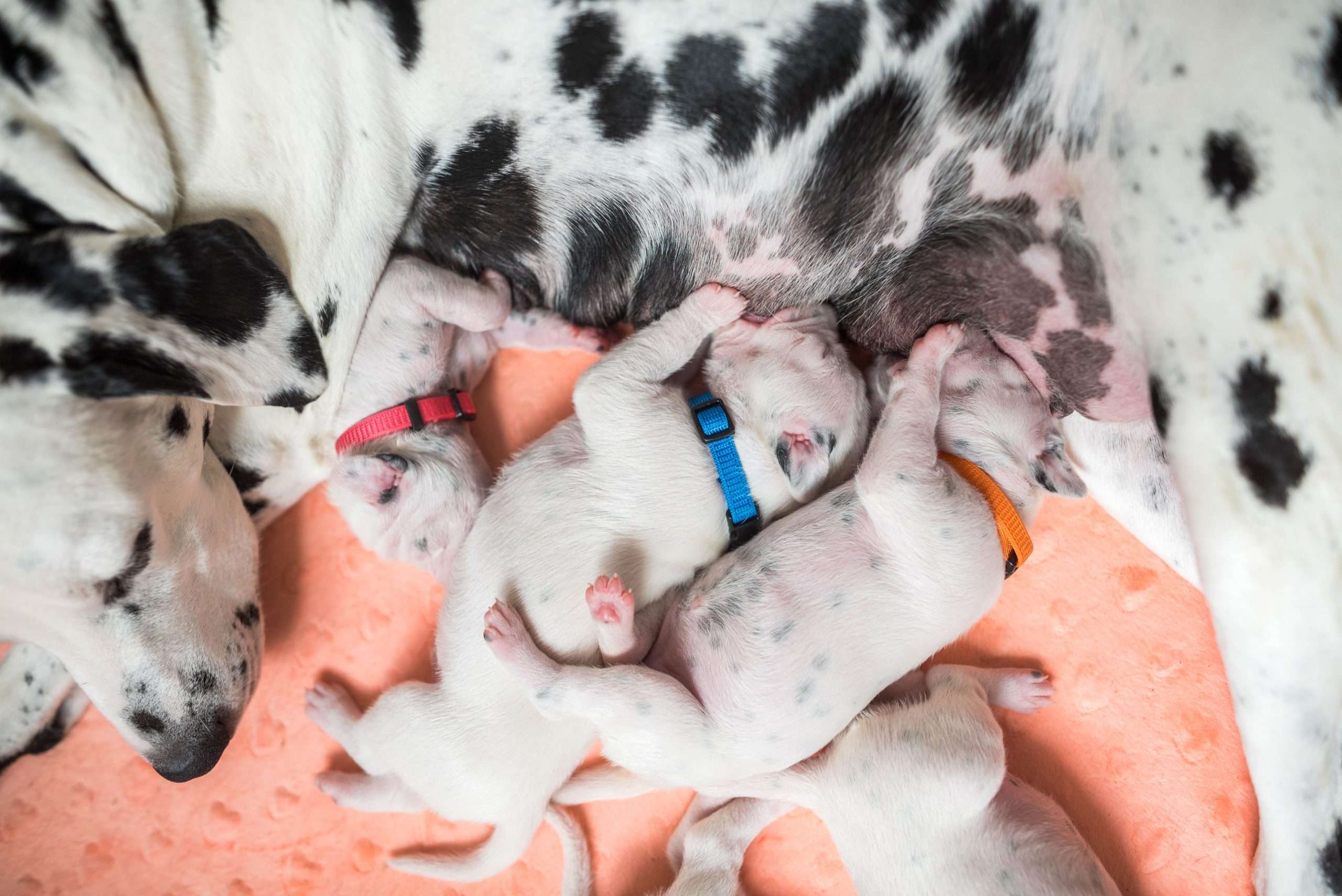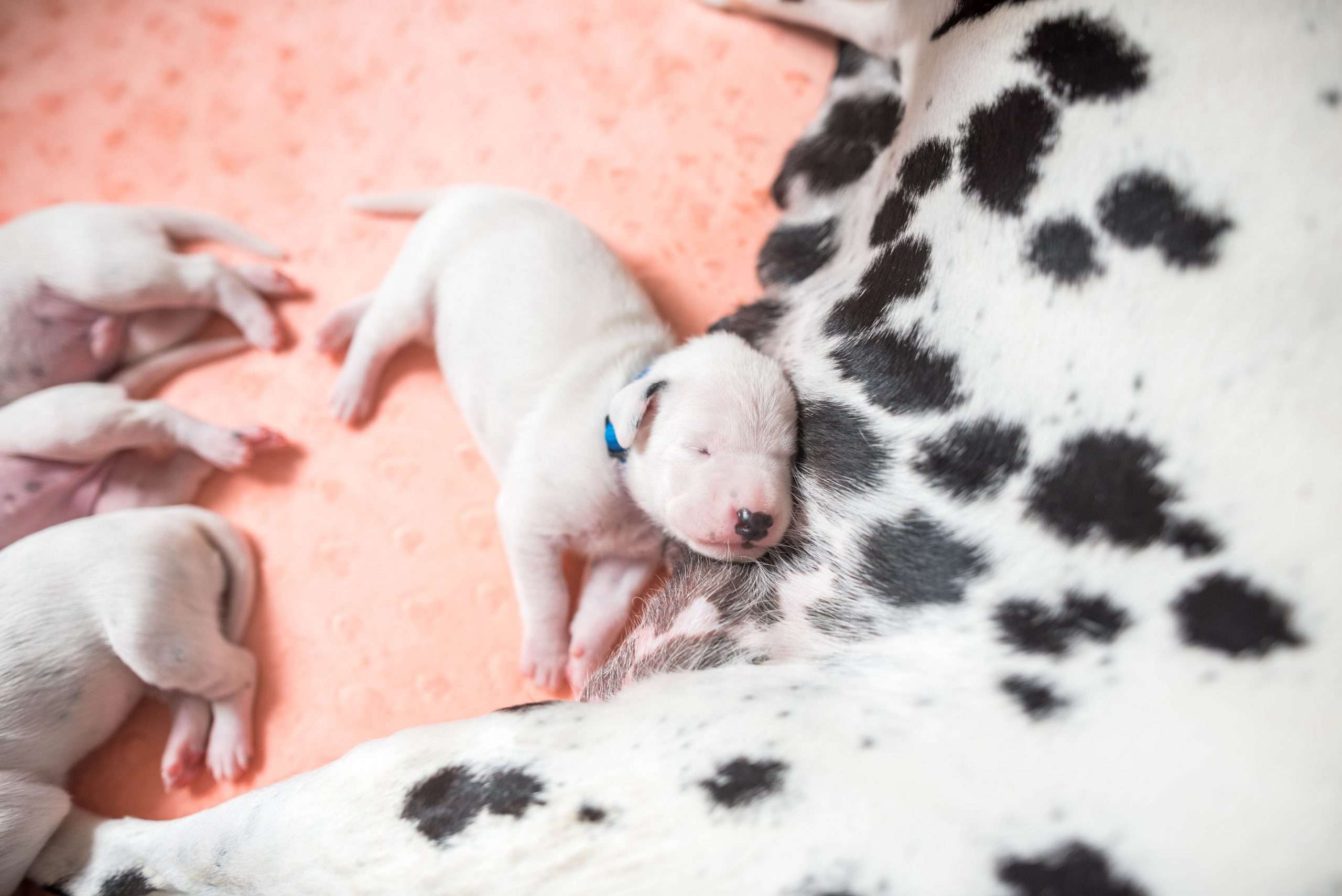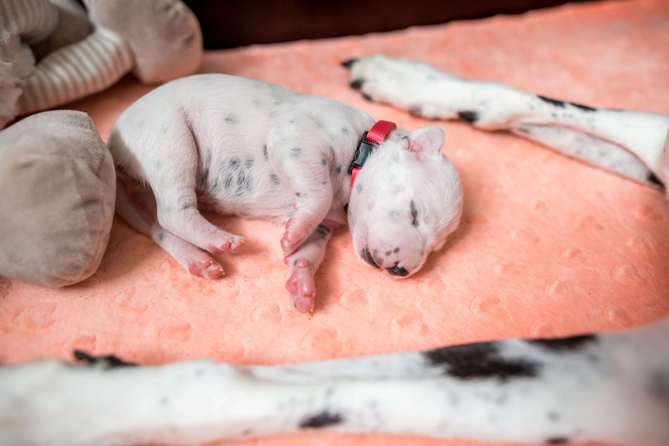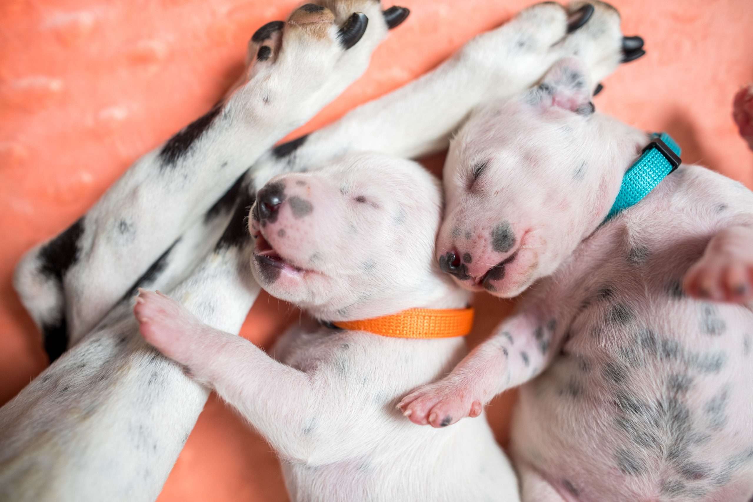 Hach, Welpe müsste man sein. Mit dickem Kugelbauch im Milchkoma satt und zufrieden schlummern. Es ist zuckersüß zu sehen, wie es in der ganzen Wurfbox zuckt und wackelt, hier mal ein Beinchen, da mal ein Öhrchen und ganz viel verträumtes Nuckeln. Und erst diese Geräusche dazu! Und diese kleinen heraushängenden Zungen. Zu goldig!