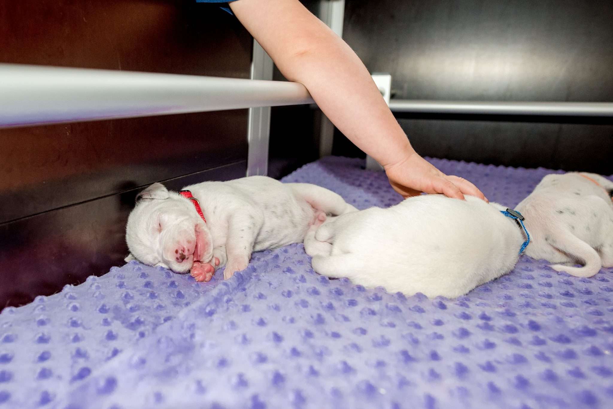 Noch steht die Wurfkiste neben unserem Bett. Die letzte Woche dieser ganz intimen und exklusiven Zeit mit den Welpen ist angebrochen. Es ist ein solches Privileg, diese ersten Momente der Kleinen mit niemandem teilen zu müssen. Ihre ersten Blicke gehen an mich, ihre ersten Schritte auf mich zu, die erste gehörte Stimme und die ersten angeknabberten Finger sind meine (dass sich später ja niemand über die fehlende Beißhemmung beklagt).