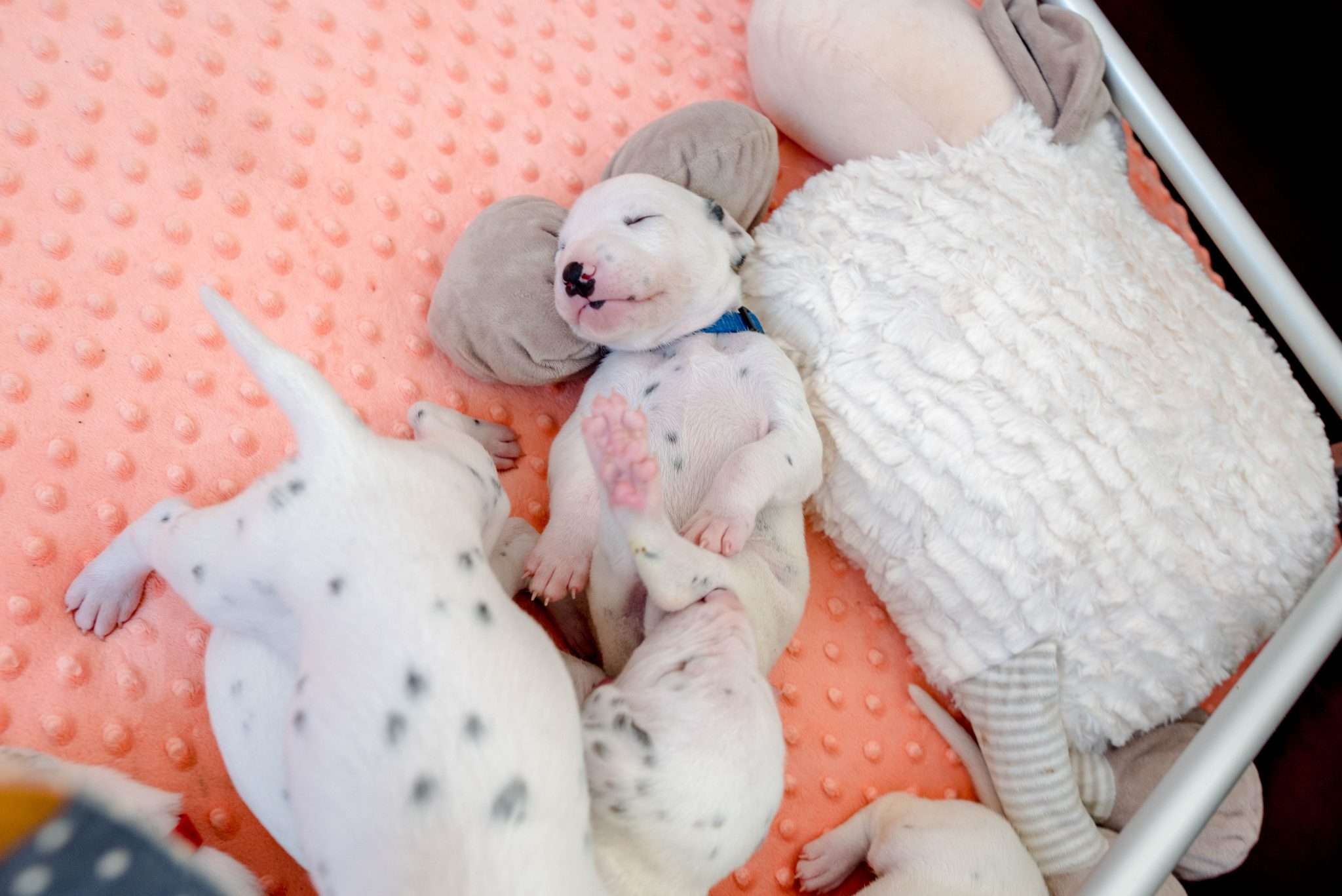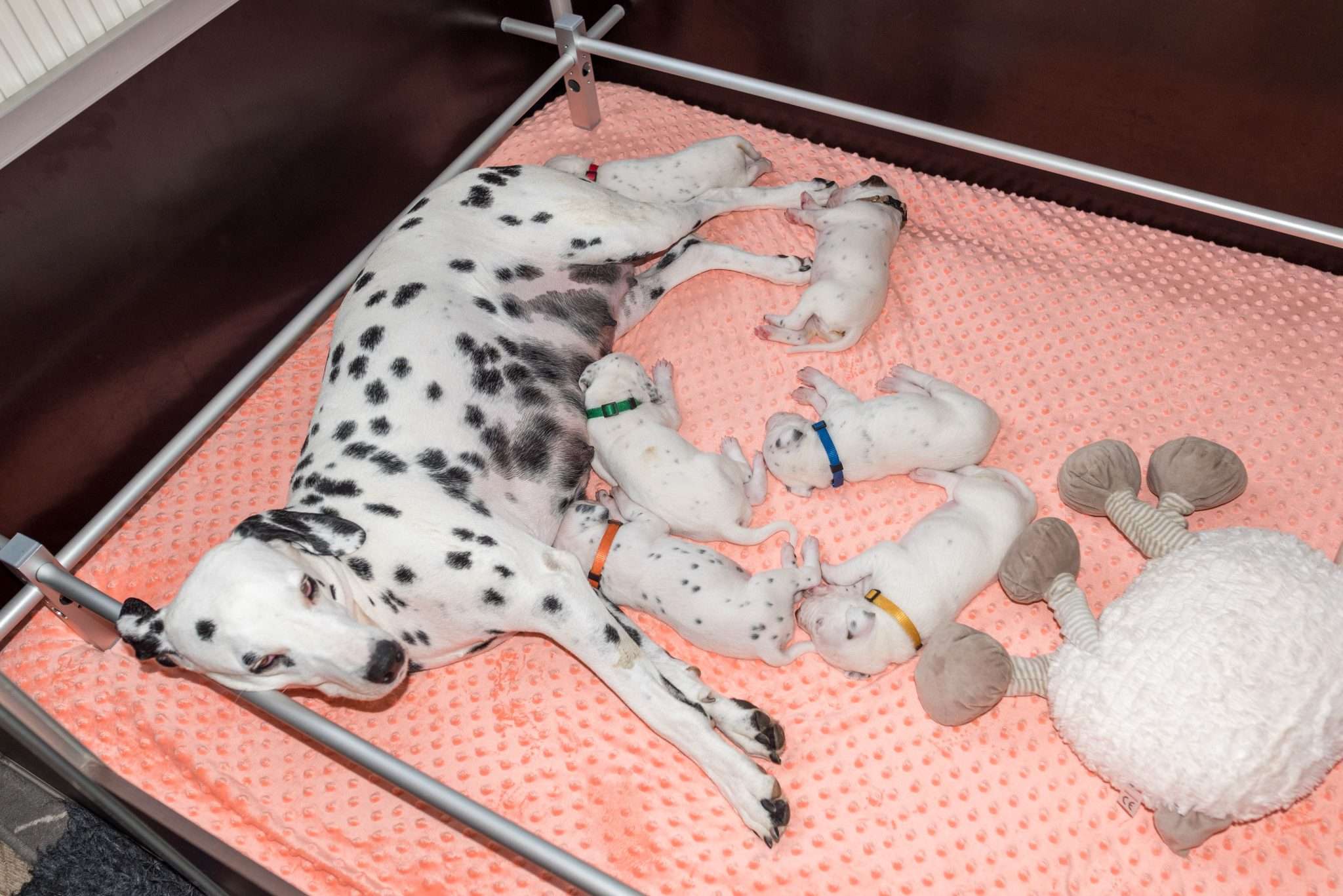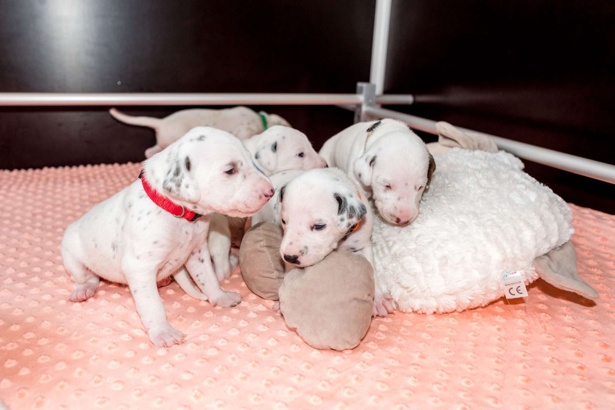 Das Motto dieser Woche lautet aber hauptsächlich: Geräuschgewöhnung. Dank der stückweise geöffneten Öhrchen – diese erste Reaktion von einigen Speckmaden auf mein Fiepsen ist unbeschreiblich! – werden sie aus unserem Alltag heraus ganz nebenbei vertraut mit menschlichen Stimmen, Kinderlärm, Haushaltsgeräuschen, der Türklingel, dem Radio und Umgebungslauten wie vorbeifahrenden Autos oder Vogelgezwitscher, auch wenn das Fenster in dieser Jahreszeit nicht ganz so oft offen stehen kann. Ich möchte meine Welpen von klein auf an verschiedene Geräusche gewöhnen, um die Grundvoraussetzung zu schaffen, dass sie später in den unterschiedlichsten Situationen gelassen bleiben. Im Kalender blitzt bereits Silvester mit dem entsprechend zu erwartenden Lärm auf, somit gibt’s demnächst ein bisschen Feuerwerk auf die Lauscher.