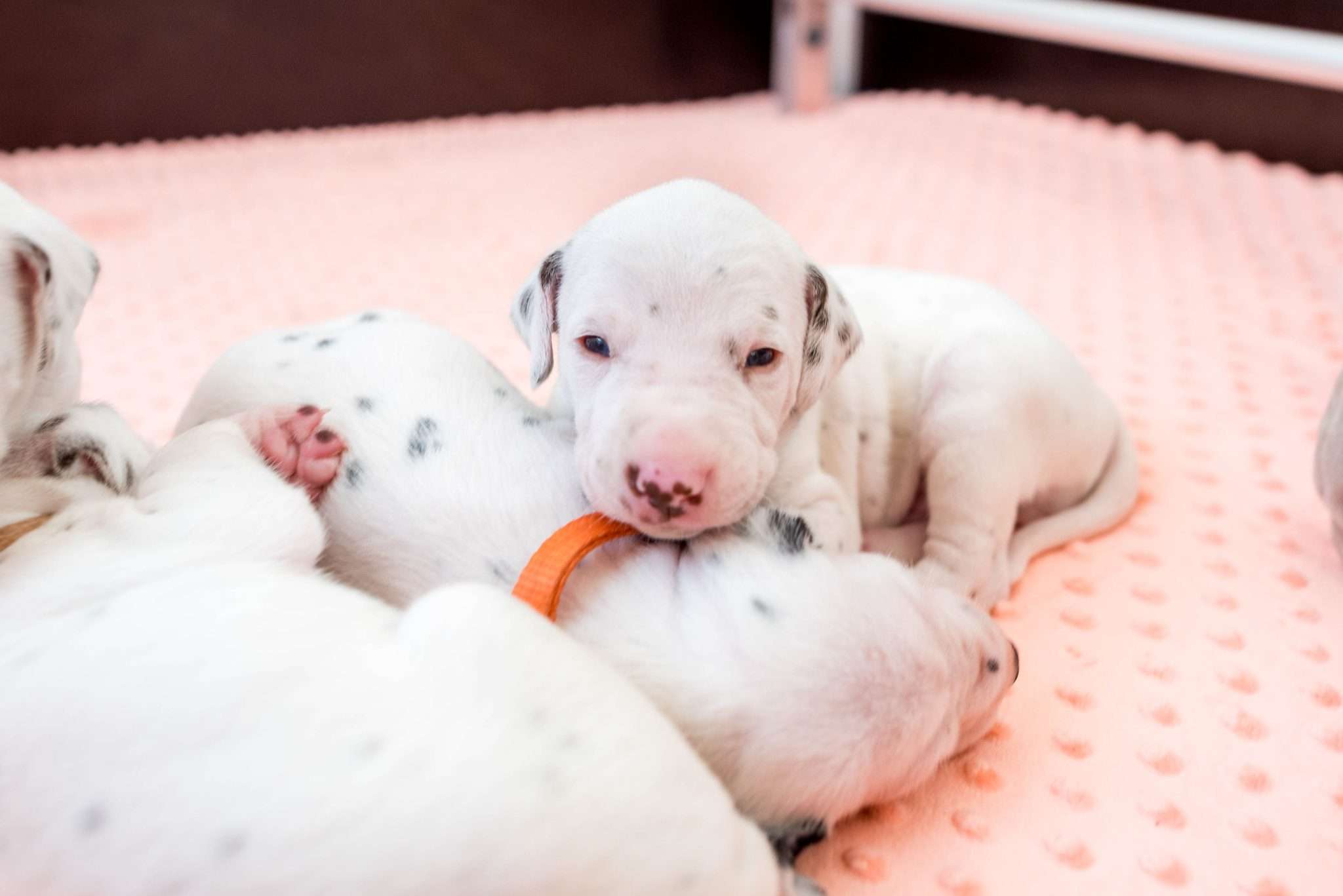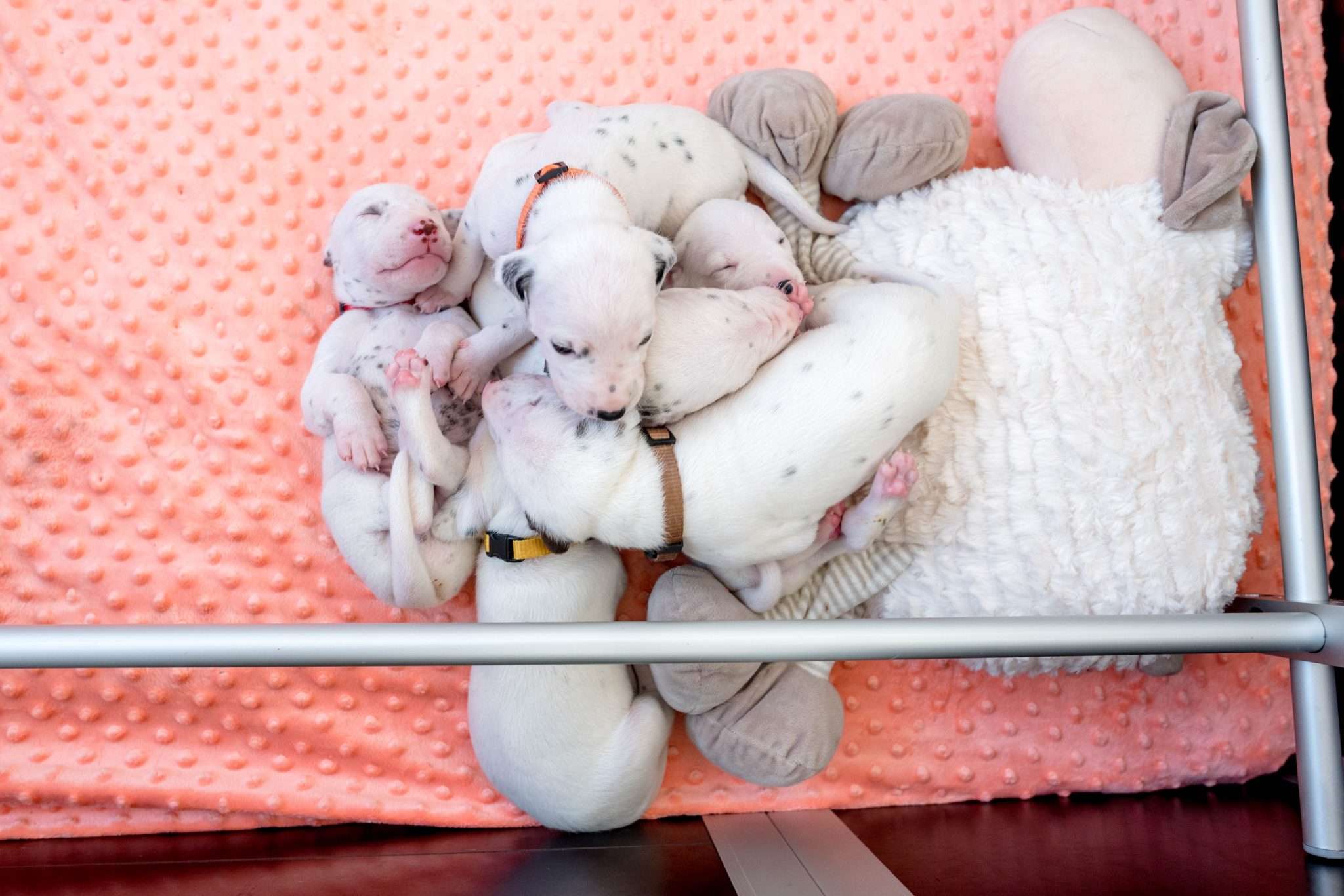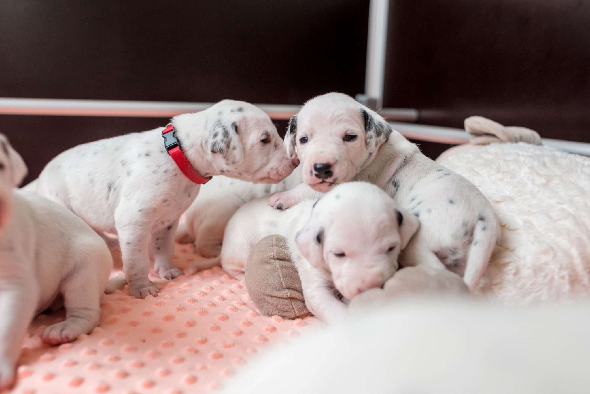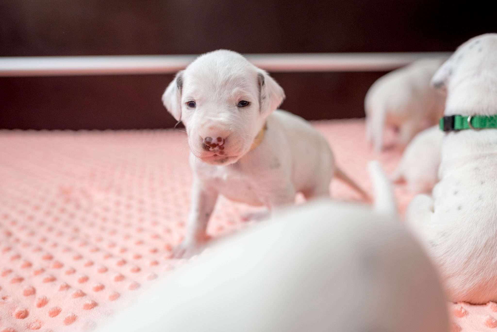 Das Motto dieser Woche lautet aber hauptsächlich: Geräuschgewöhnung. Dank der stückweise geöffneten Öhrchen – diese erste Reaktion von einigen Speckmaden auf mein Fiepsen ist unbeschreiblich! – werden sie aus unserem Alltag heraus ganz nebenbei vertraut mit menschlichen Stimmen, Kinderlärm, Haushaltsgeräuschen, der Türklingel, dem Radio und Umgebungslauten wie vorbeifahrenden Autos oder Vogelgezwitscher, auch wenn das Fenster in dieser Jahreszeit nicht ganz so oft offen stehen kann. Ich möchte meine Welpen von klein auf an verschiedene Geräusche gewöhnen, um die Grundvoraussetzung zu schaffen, dass sie später in den unterschiedlichsten Situationen gelassen bleiben. Im Kalender blitzt bereits Silvester mit dem entsprechend zu erwartenden Lärm auf, somit gibt’s demnächst ein bisschen Feuerwerk auf die Lauscher.