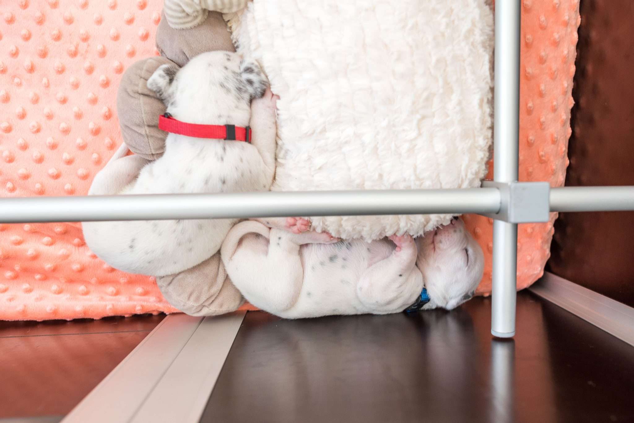 Deshalb beginne ich nun damit, den Zwergen langsam verschiedene Untergründe in der Wurfbox anzubieten, sodass sie lernen, dass ein bisschen Rascheln und Knistern völlig normal sind und keinerlei Gefahren darstellen. Auch optische Reize wie ein Mobile oder der Fernseher in sicherer Entfernung kommen nach und nach hinzu.