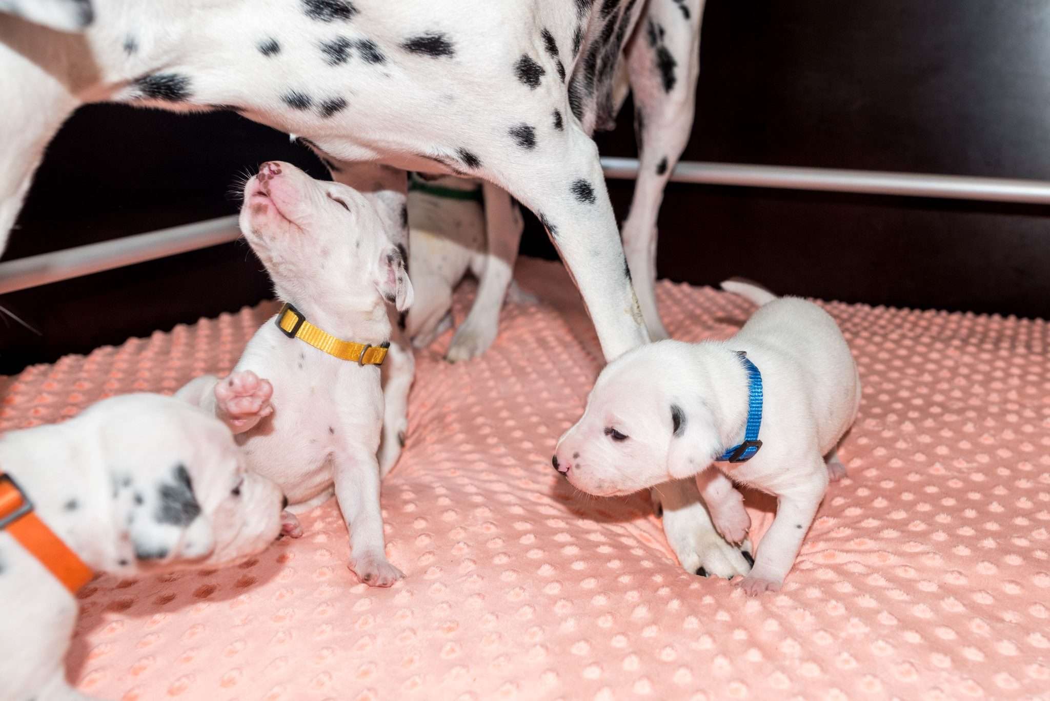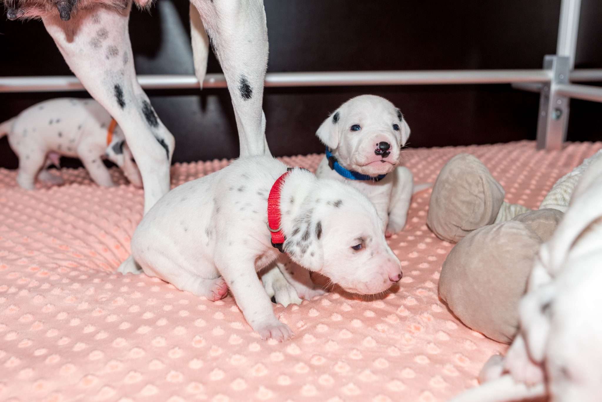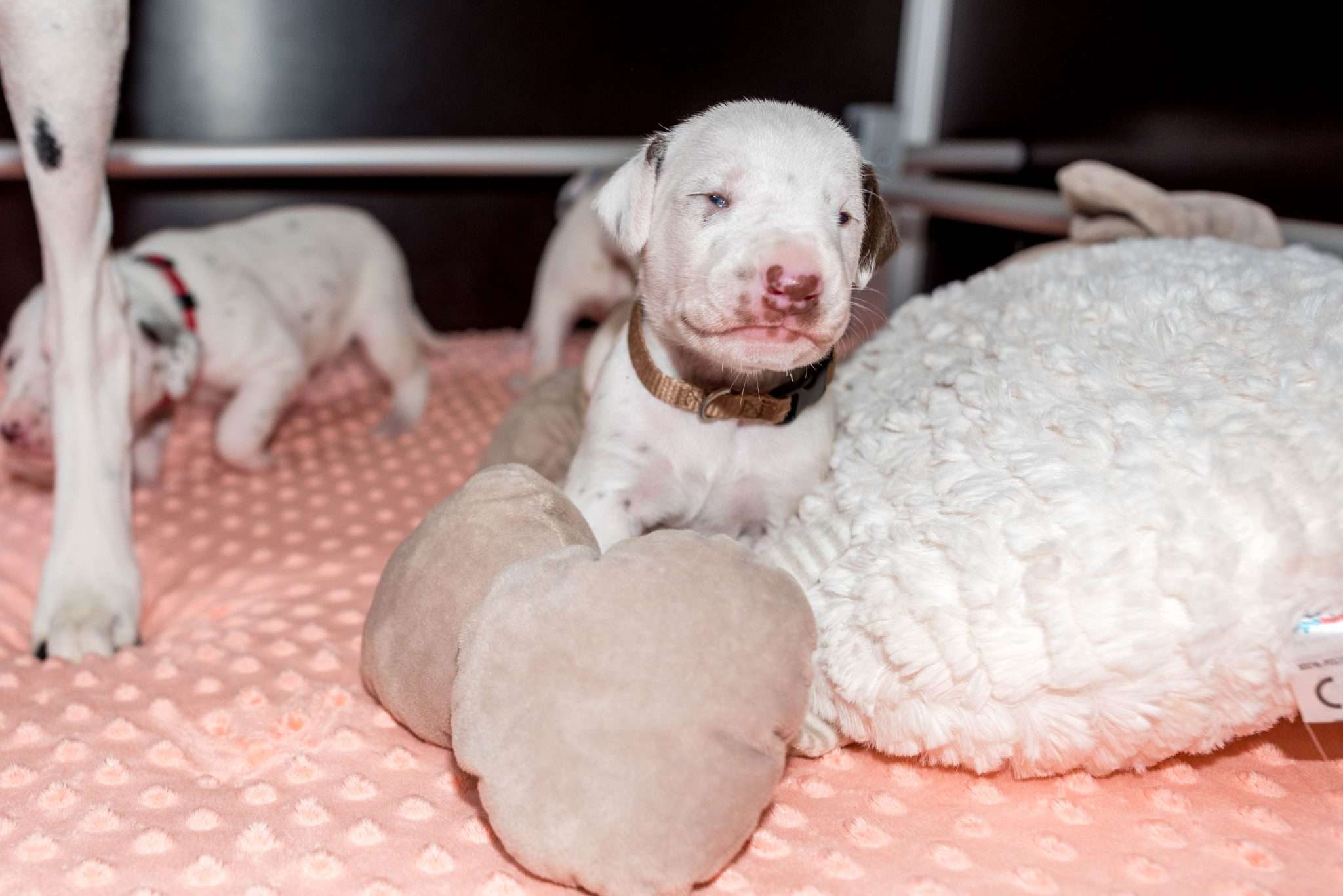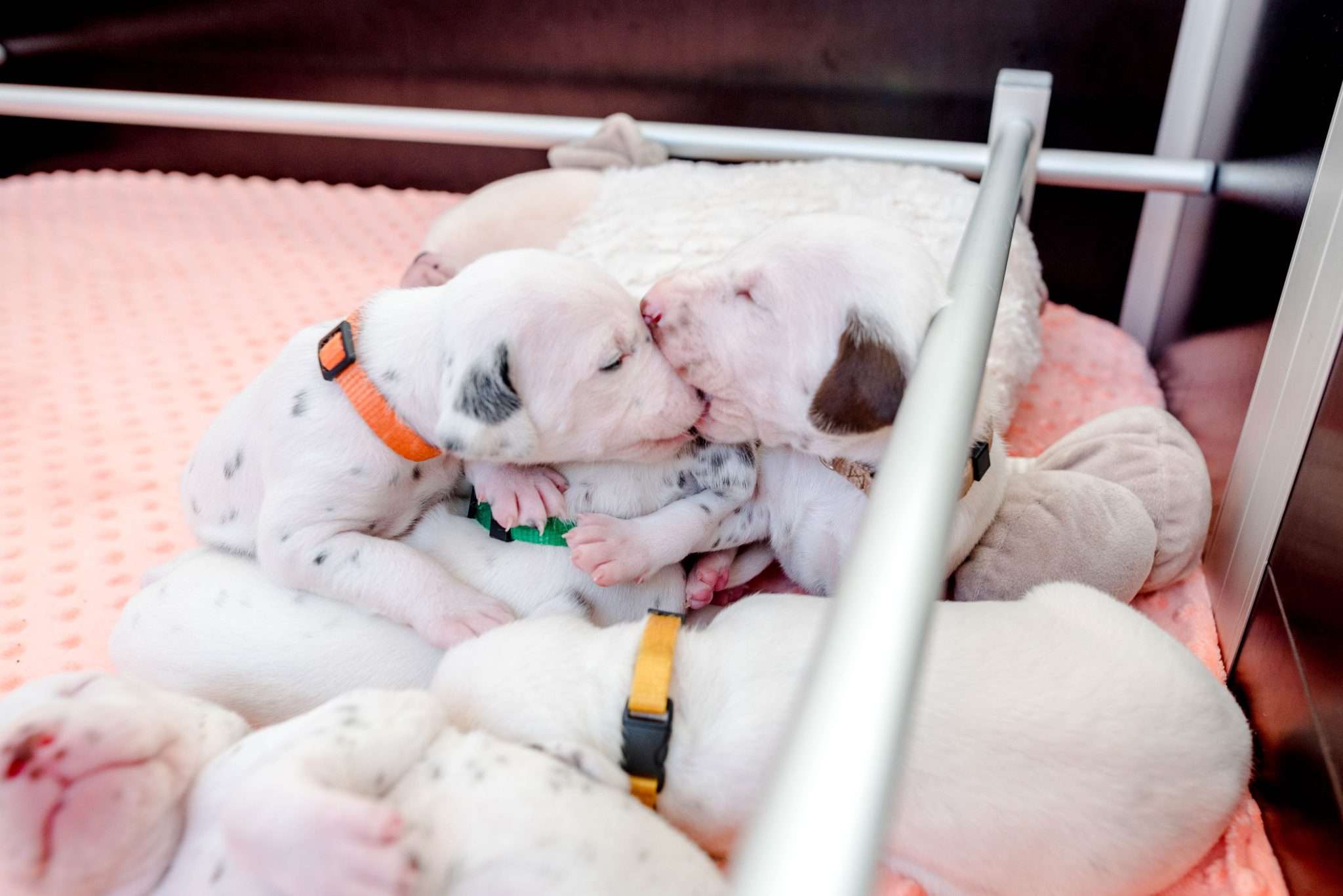 Bei der Geräuschgewöhnung ist es natürlich wichtig, dass die Lautstärke und Intensität so gepegelt ist, dass es den Welpen gesundheitlich nicht schadet, sie ängstigt oder überfordert. Auch wenn sie wiederholt mit Geräuschen konfrontiert werden, ist mir wichtig, dass sie dabei entspannt bleiben. Eine riesige Hilfe dabei ist selbstverständlich Dixi und auch die anderen Mädels mit ihrer unglaublichen Tiefenentspannung. Ihre Gelassenheit überträgt sich auf die Welpen und sie vermitteln ihnen damit absolute Alltagskompetenz.