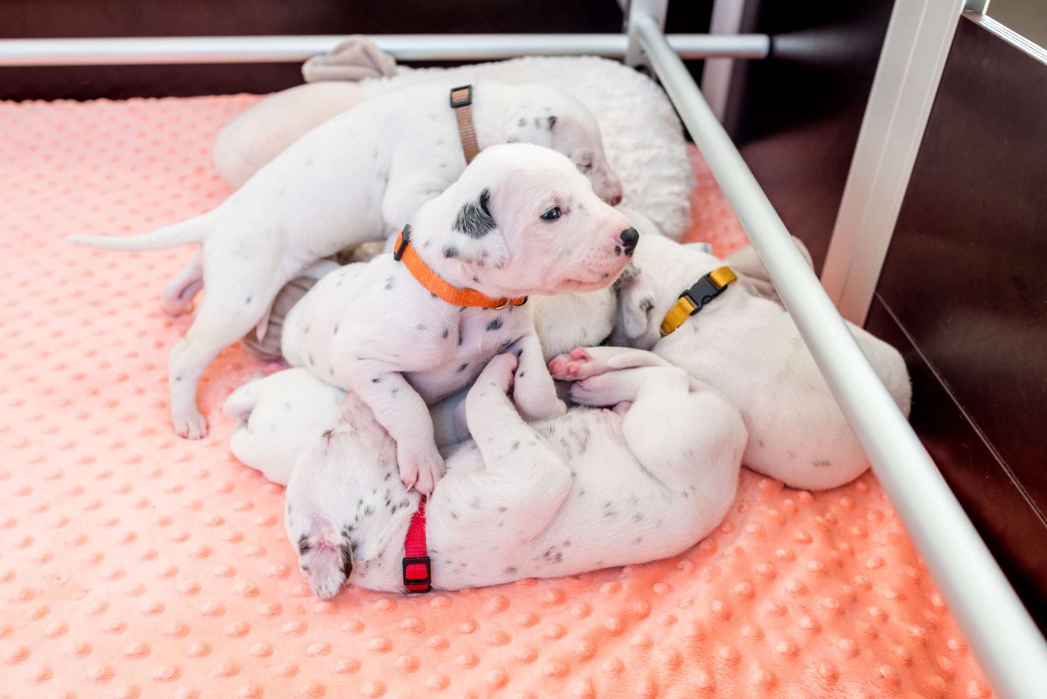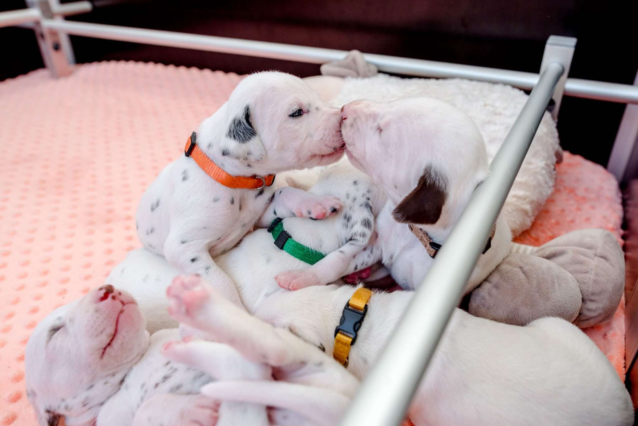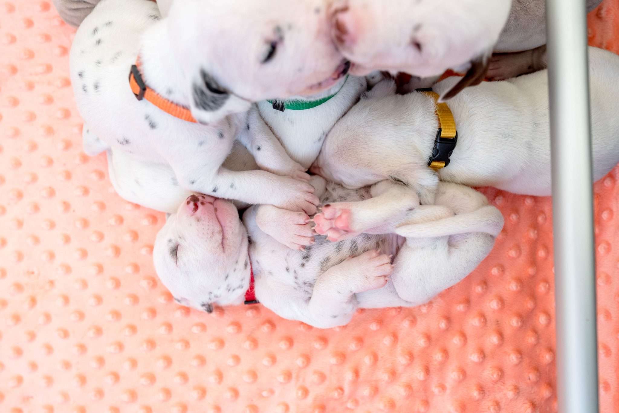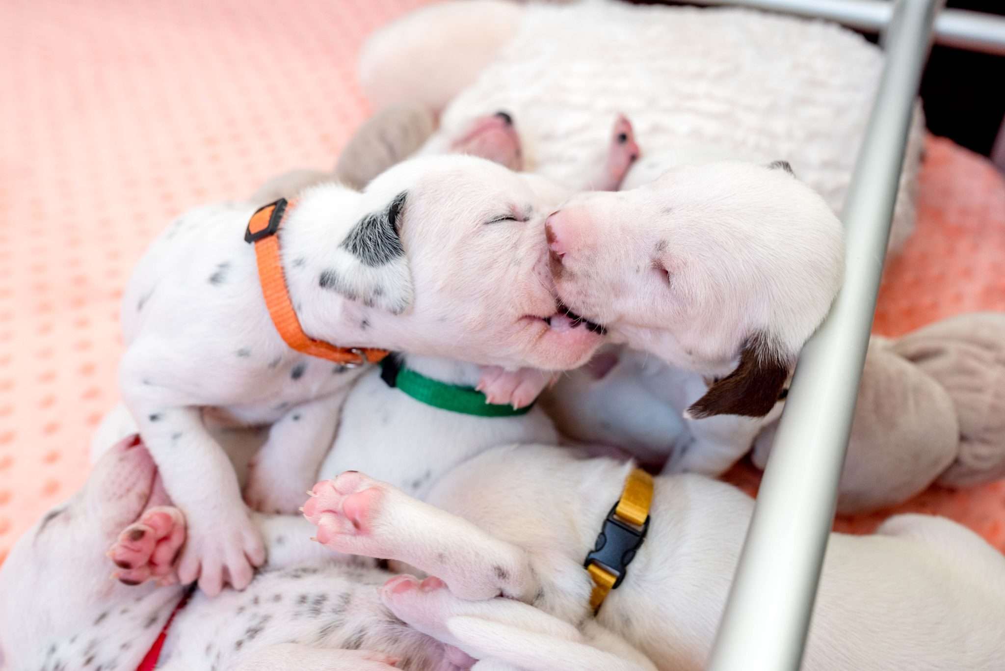 Bei der Geräuschgewöhnung ist es natürlich wichtig, dass die Lautstärke und Intensität so gepegelt ist, dass es den Welpen gesundheitlich nicht schadet, sie ängstigt oder überfordert. Auch wenn sie wiederholt mit Geräuschen konfrontiert werden, ist mir wichtig, dass sie dabei entspannt bleiben. Eine riesige Hilfe dabei ist selbstverständlich Dixi und auch die anderen Mädels mit ihrer unglaublichen Tiefenentspannung. Ihre Gelassenheit überträgt sich auf die Welpen und sie vermitteln ihnen damit absolute Alltagskompetenz.