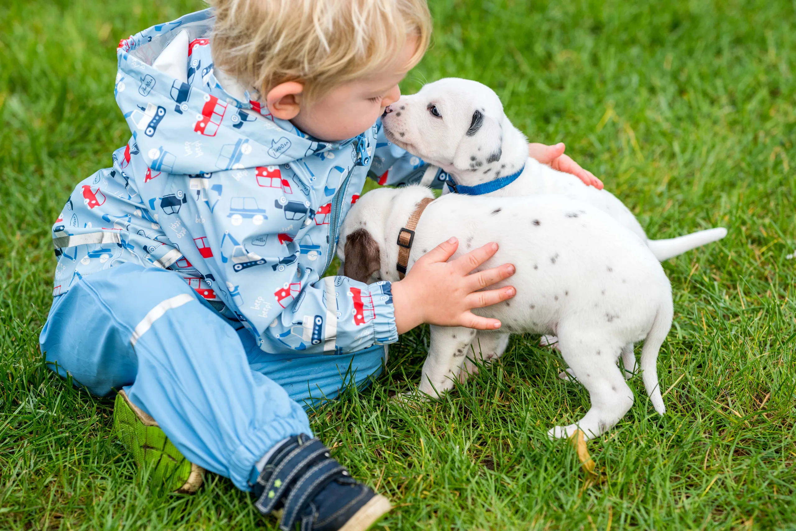 Nach wie vor überwiegt der Parasympathikus (Entspannung) und so setze ich auch prophylaktisch auf die Gewöhnung an potenzielle “Schreckereignisse”. Hier wird ein Regenschirm aufgespannt, dort eine Decke ausgeschüttelt, zu dieser Jahreszeit fliegt sowieso immer irgendetwas im Wind, da scheppert etwas auf den Boden und plötzlich springt jemand unvorhergesehen um die Ecke oder läuft mit schwarzem Mantel und Krückstock durch den Außenbereich. Alle sind unglaublich gelassen und sogar neugierig, das freut mich riesig! Als Belohnung gibt es von mir ganz viel Aufmerksamkeit, sodass die Speckies derartige Überraschungen sofort mit etwas Positivem verknüpfen und als selbstverständlich abspeichern. Natürlich glänzen die Großen in ihren unbekümmerten Reaktionen mit wundervoll hilfreicher Vorbildfunktion. Ein Mal mehr bewährt sich, ein alltagssouveränes Rudel zu haben.