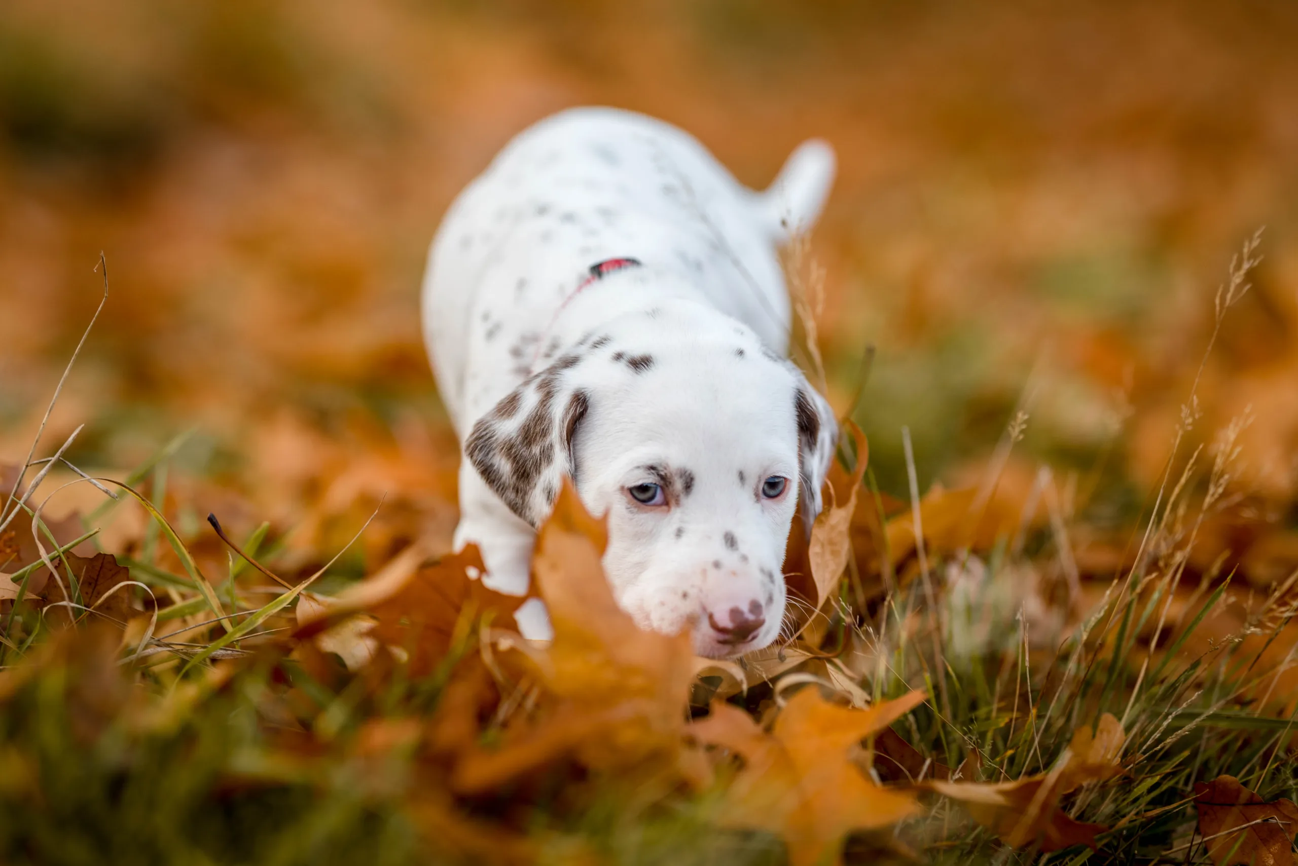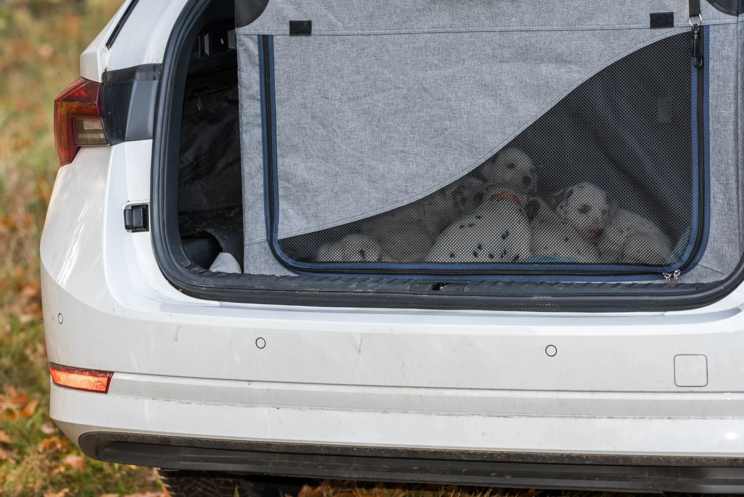 Angekommen am geplanten Abstecher und bei geöffneter Heckklappe, blinzelten alle neugierig mit den Äuglein und schnupperten interessiert mit den Nasen. Die Box aus dem Auto gehoben, Reißverschluss geöffnet und schon startete munter die Entdeckungstour mit Blätterspaß!