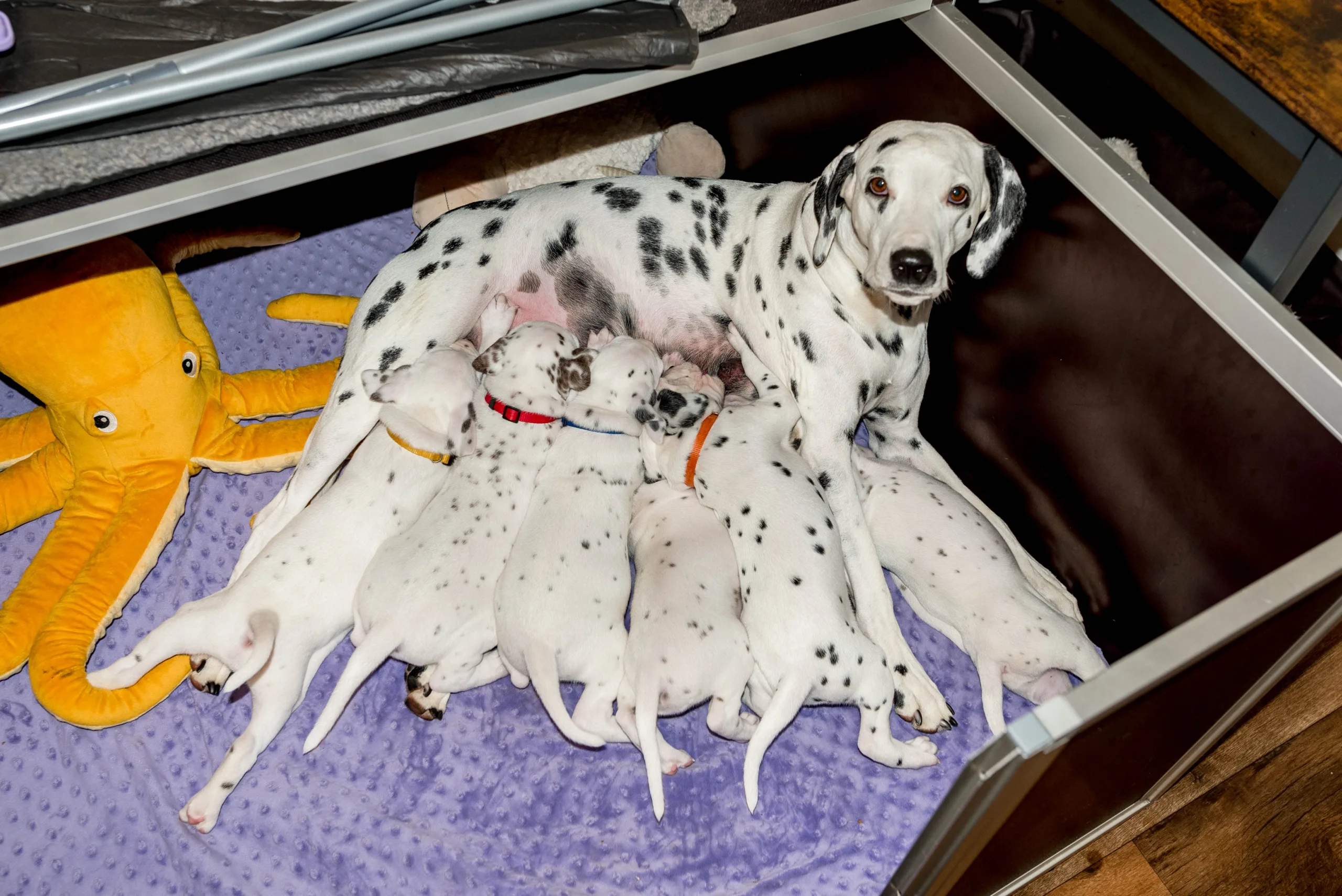 Nachmittags gab’s nochmals ganz, ganz liebevoller Besuch, der mich tatkräftig dabei unterstützt hat, den Speckies dabei zu helfen, ihre natürliche Stubenreinheit zu festigen. Erfahrungsgemäß muss nach den drei S gepullert werden. Nach dem Schlafen, nach dem Speisen, nach dem Spielen. Naja und wer herkommt und Hände hat, wird natürlich eingespannt, die Zwerge eben genau dann schnell mit rauszusetzen.