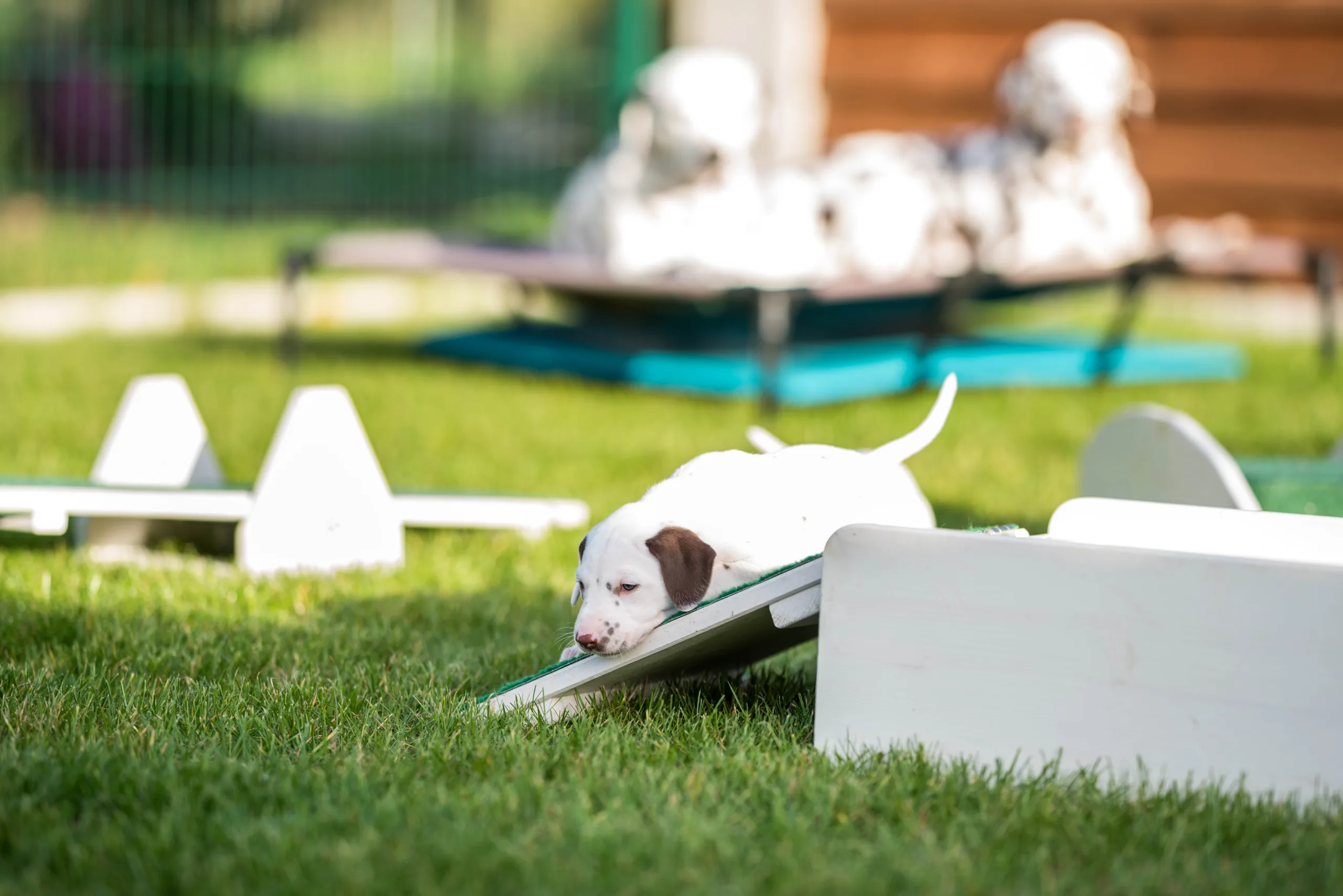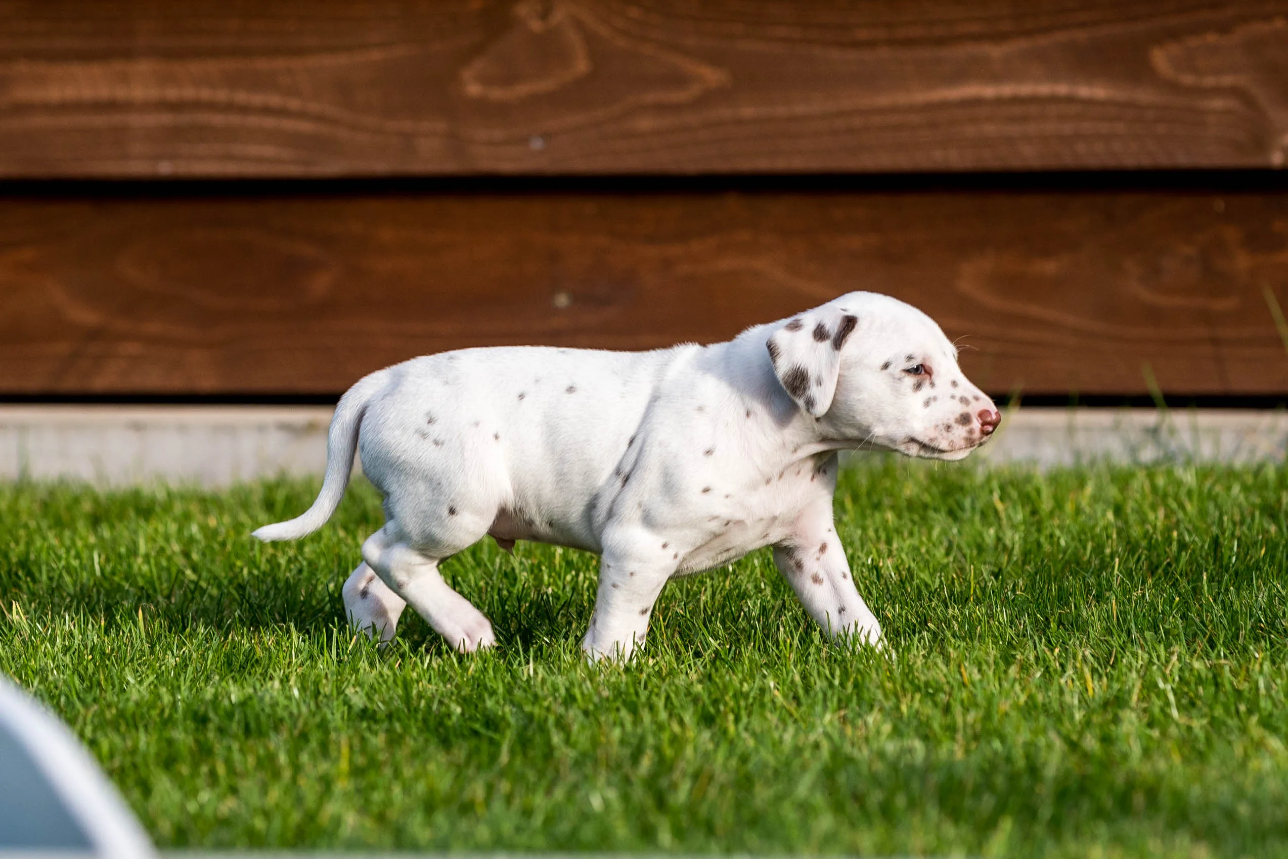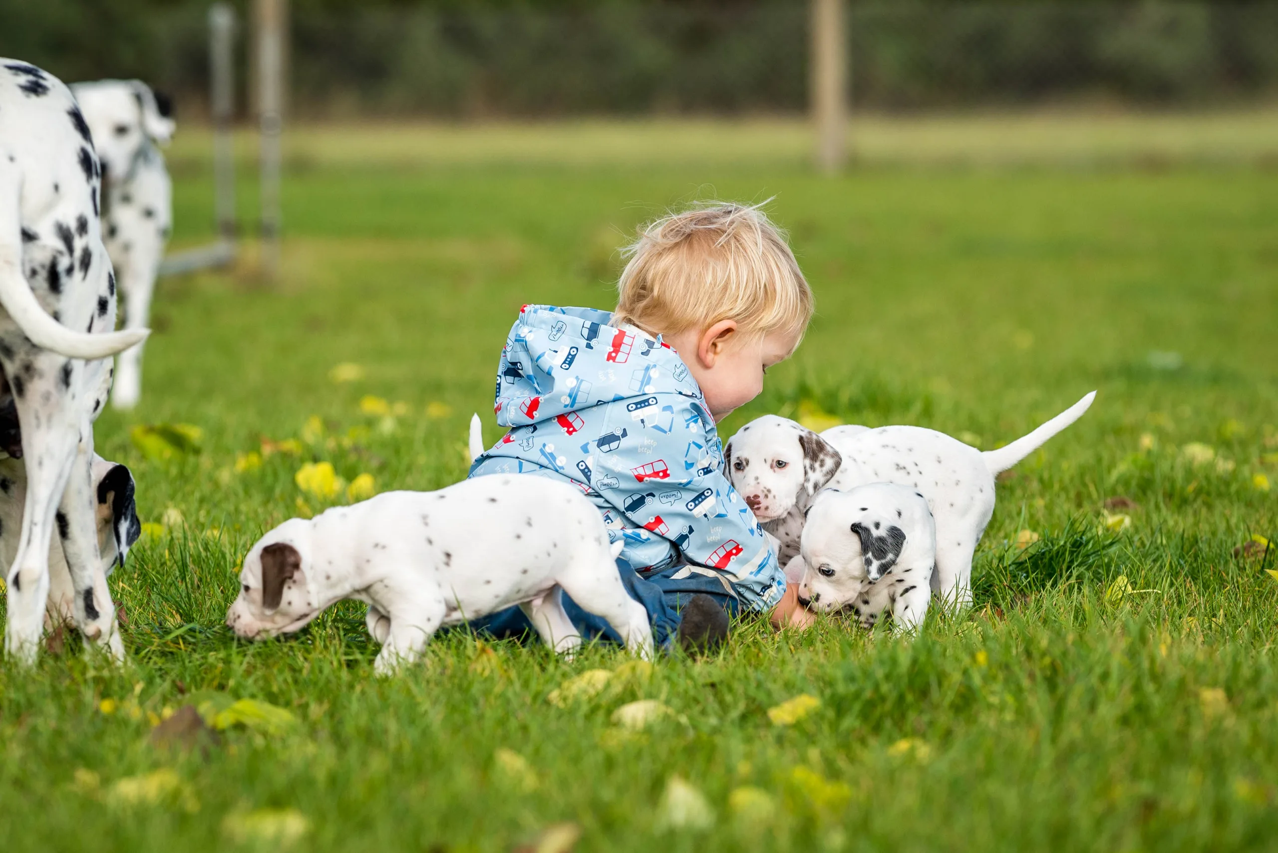 So schön es für mich ist, in die strahlenden Augen der Interessenten und anderen zahlreichen Besucher zu schauen, zu sehen, wie die zukünftigen Welpenfamilien zum ersten Mal Kontakt mit ihrem baldigen Zuwachs aufnehmen können und die Kleinen direkt verziehen mit Handspiel und Pulloverbänderknabbern, so wichtig es für die gesellschaftliche Sozialisierung der Speckies ist, möglichst verschiedene Menschen positiv kennenzulernen, so sehr genieße ich es auch, sie einfach wieder einen Tag nur für mich zu haben und ihnen die Welt zeigen zu können. Besonders bei solchem Wetter macht Umweltsozialisierung unglaublich viel Spaß (und hinterher ordentlich müde).