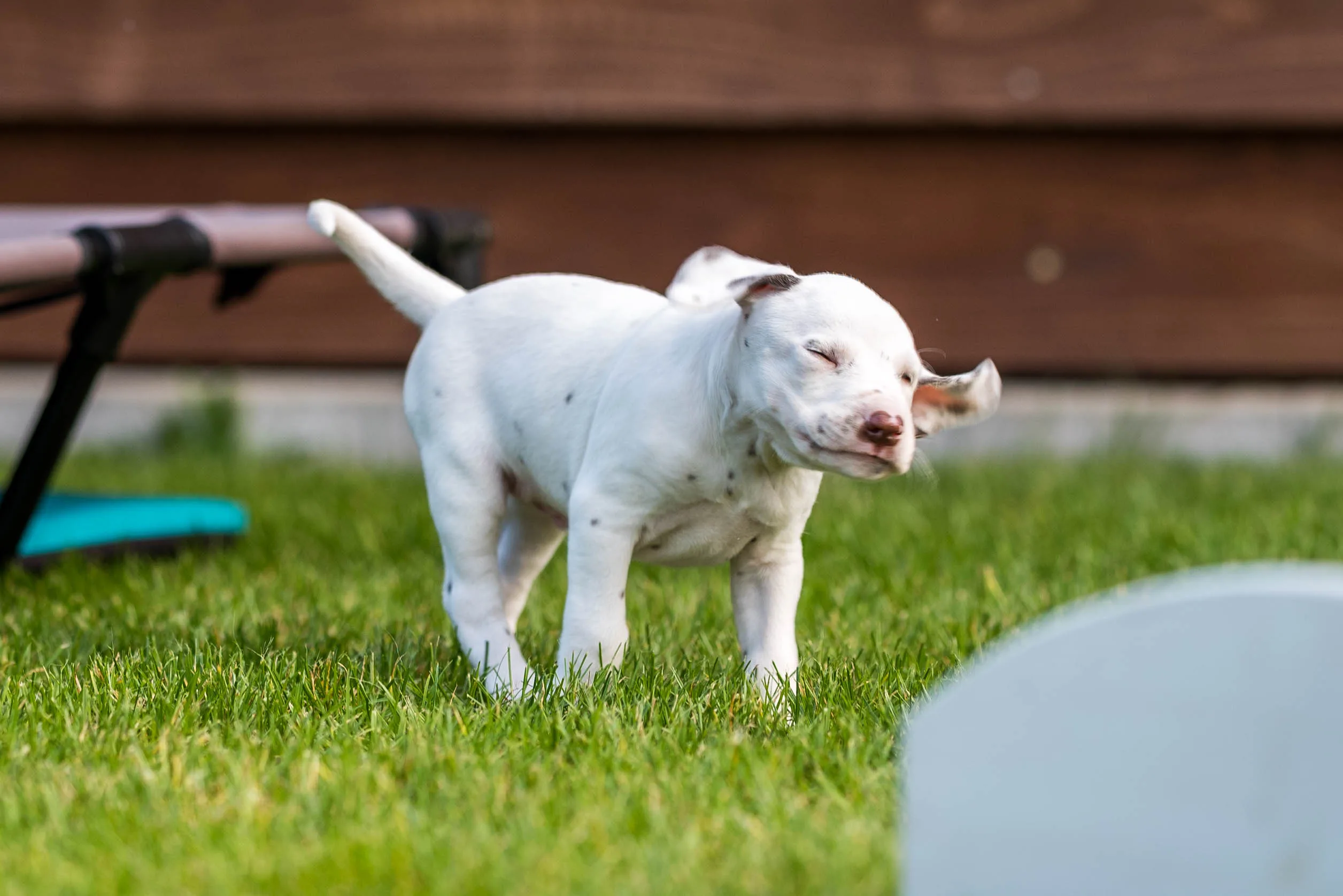 Was bitte war das für ein herrlicher Herbsttag? Stürmisch, ja, sehr sogar, aber trocken, mild und hier und da blitzen sogar die Sonnenstrahlen für einige Minuten durch die Wolken. Bedeutet, ab ins Freie! Ich musste heute sogar nochmal den Rasen im Auslauf abmähen, wer hätte das gedacht. Es könnte Mitte November durchaus ungemütlicher kommen. Die Speckies haben – anders als das regelmäßige Staubsaugen in der Villa Welpe – komplett verpennt, dass ich das Grün gestutzt habe.