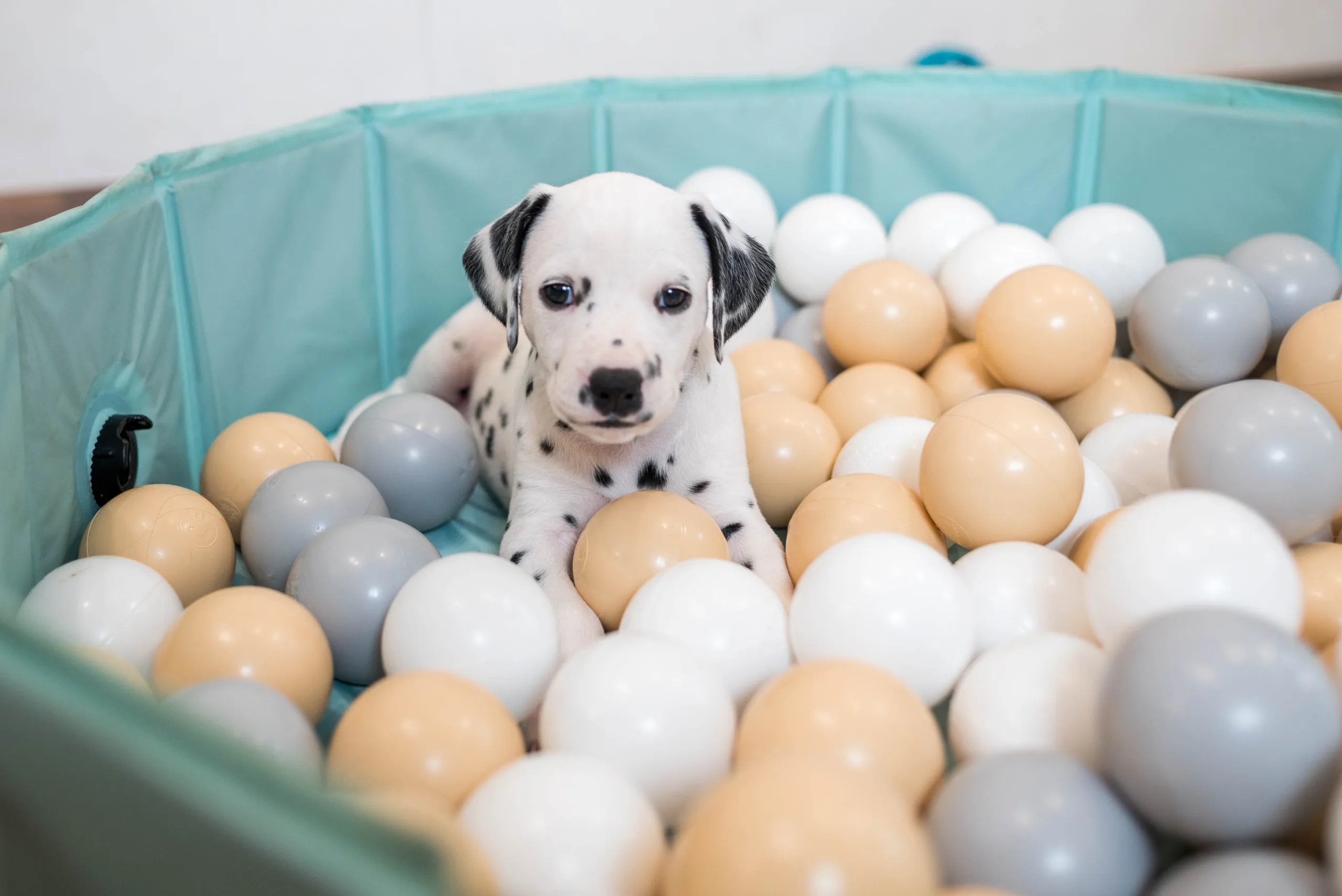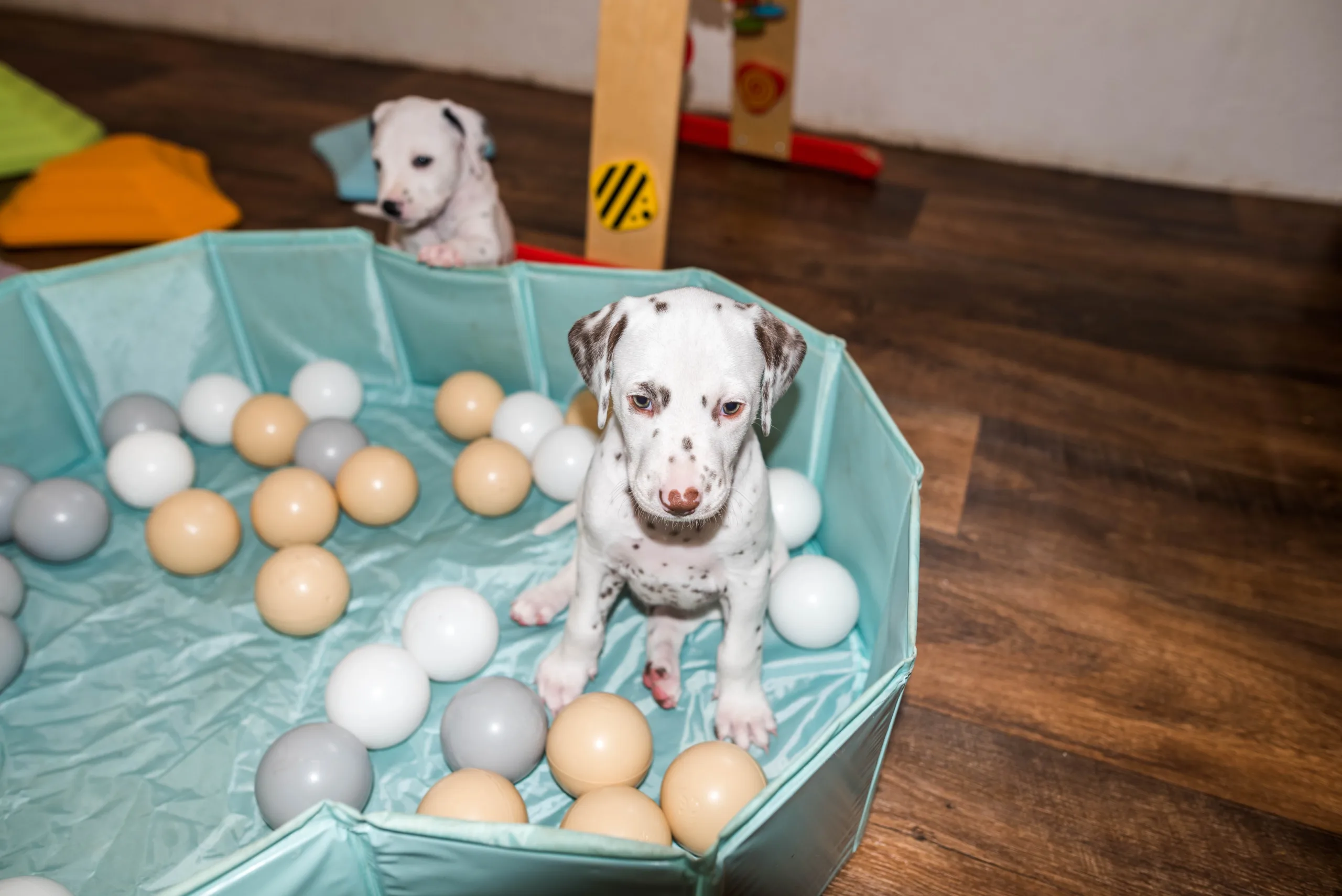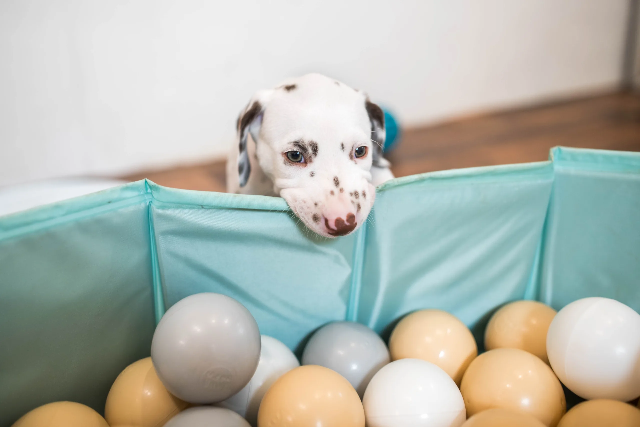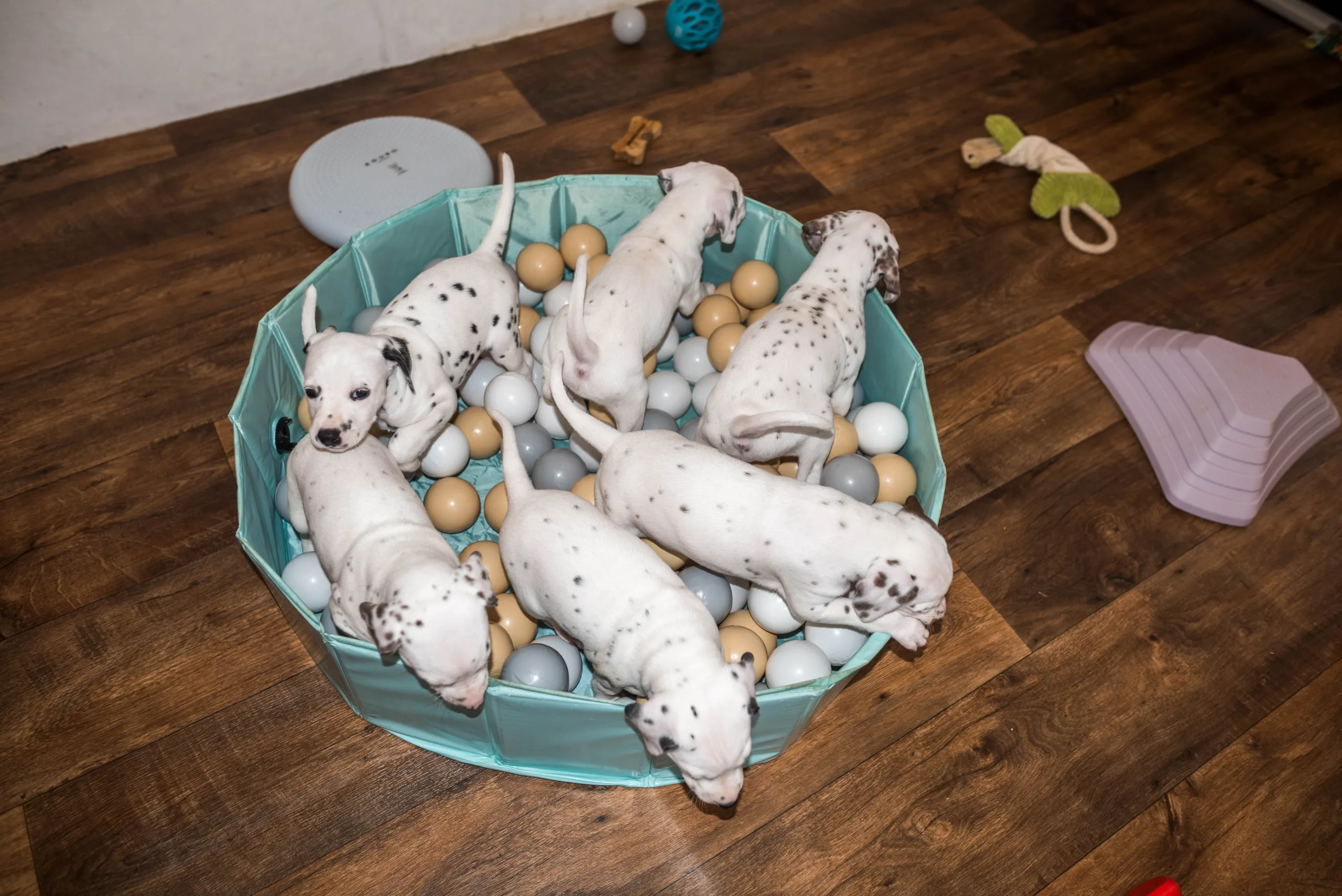 Da haben die Speckies heute also nicht schlecht geguckt, als statt den bereits vertrauten Spielstationen plötzlich ein Bällebad mitten im Raum stand. Ich würde behaupten, spontan haben alle nicht ganz verstanden, wozu das Ding eigentlich dienen sollte, viel lieber wurden kollektiv die Zähnchen daran gewetzt. Verlass war dann natürlich auf meinen Partyhund, Herrn Grün! Und schließlich trauten sich nach und nach alle hinein. Während Herr Orange dieses Mal erstaunlich schnell das Interesse verlor, legte er zum Schluss ordentlich nach und wollte gar nicht mehr herauskommen, so wohl hat er sich darin gefühlt.