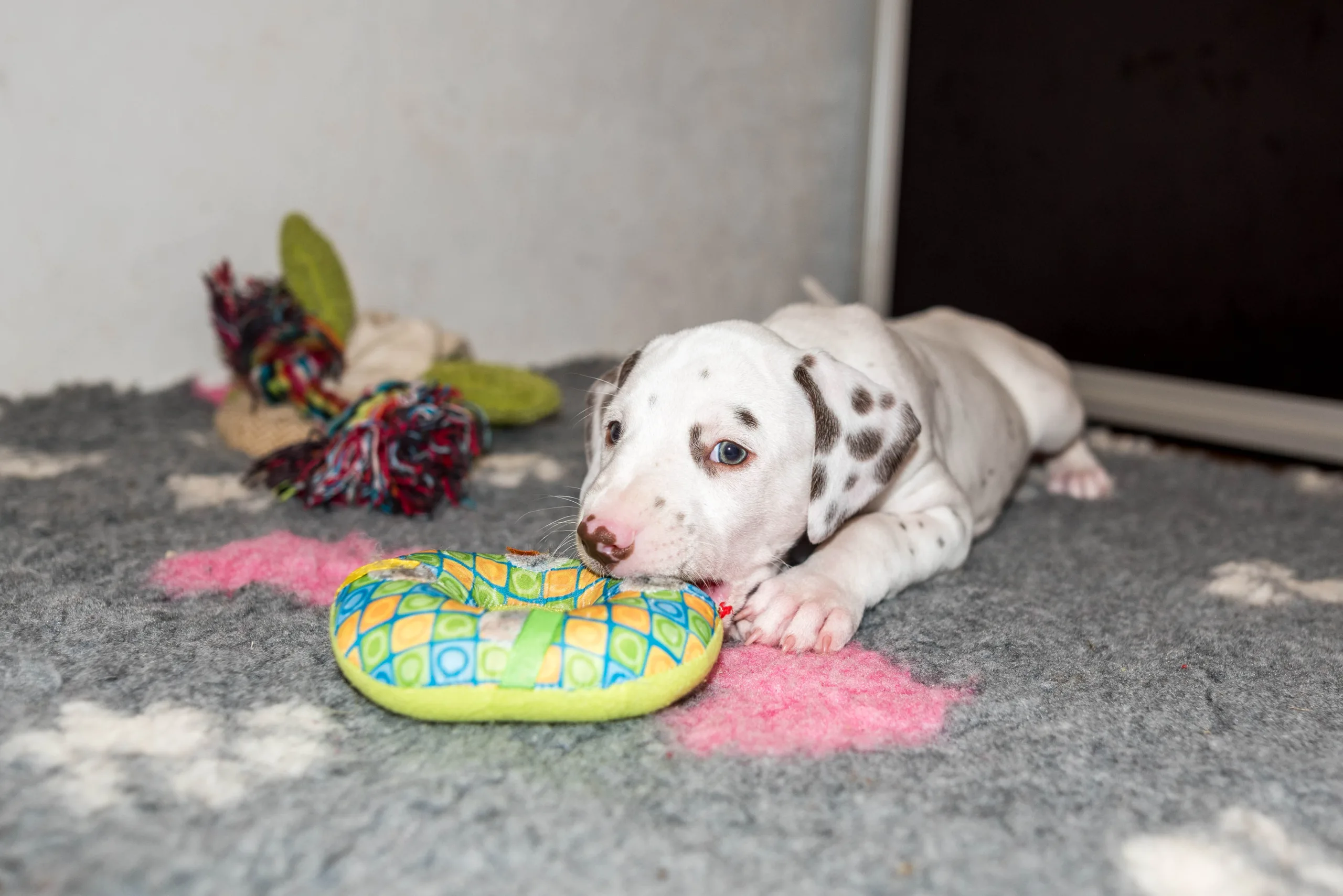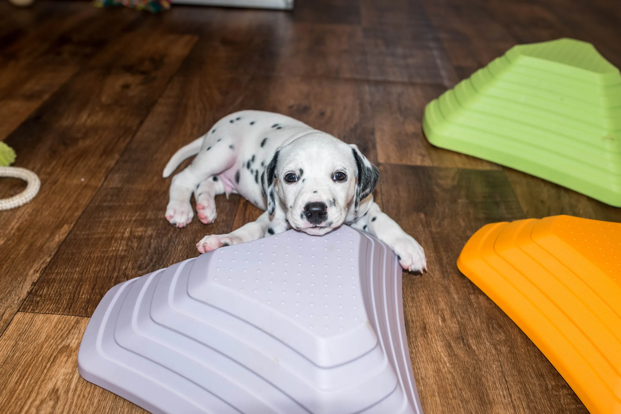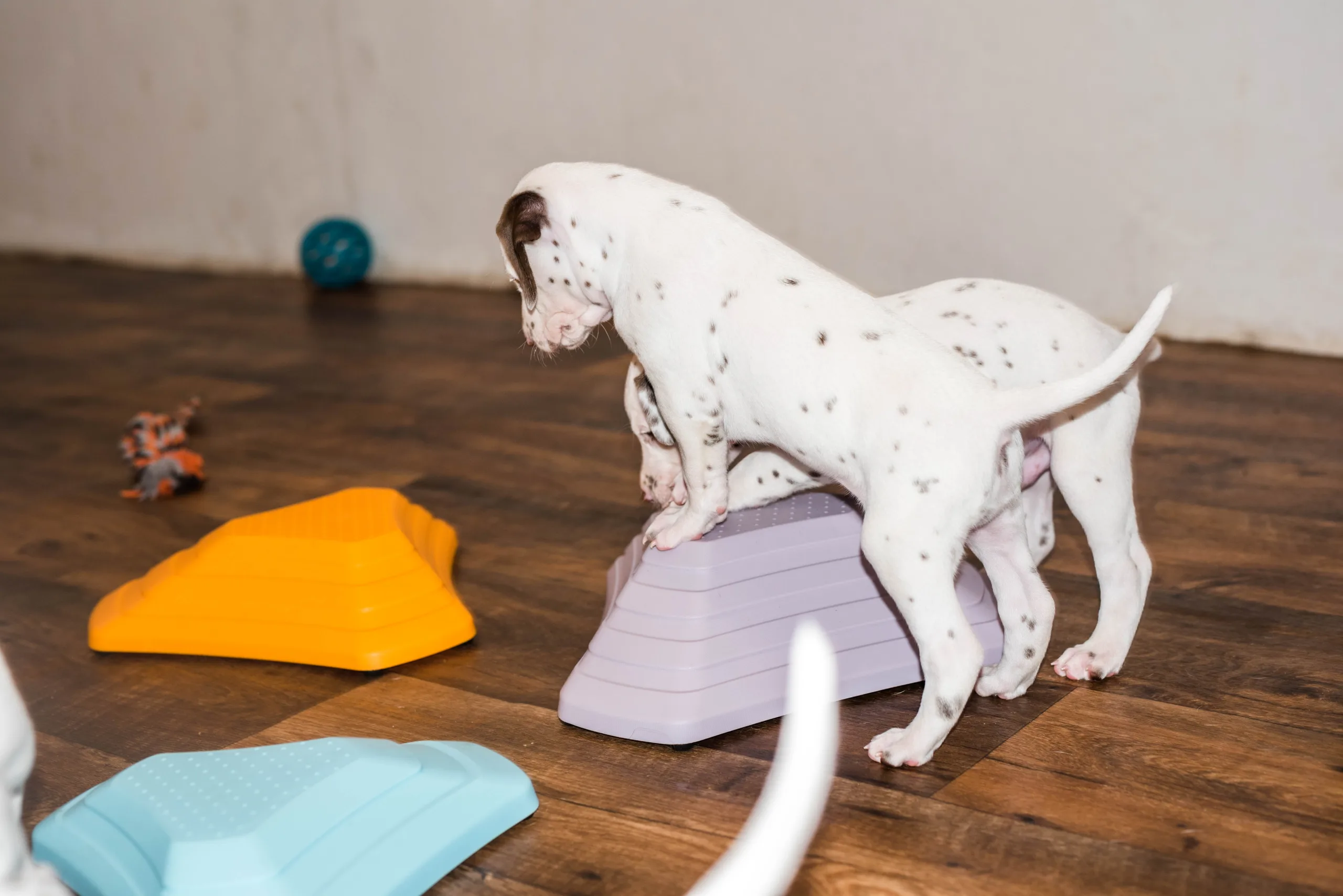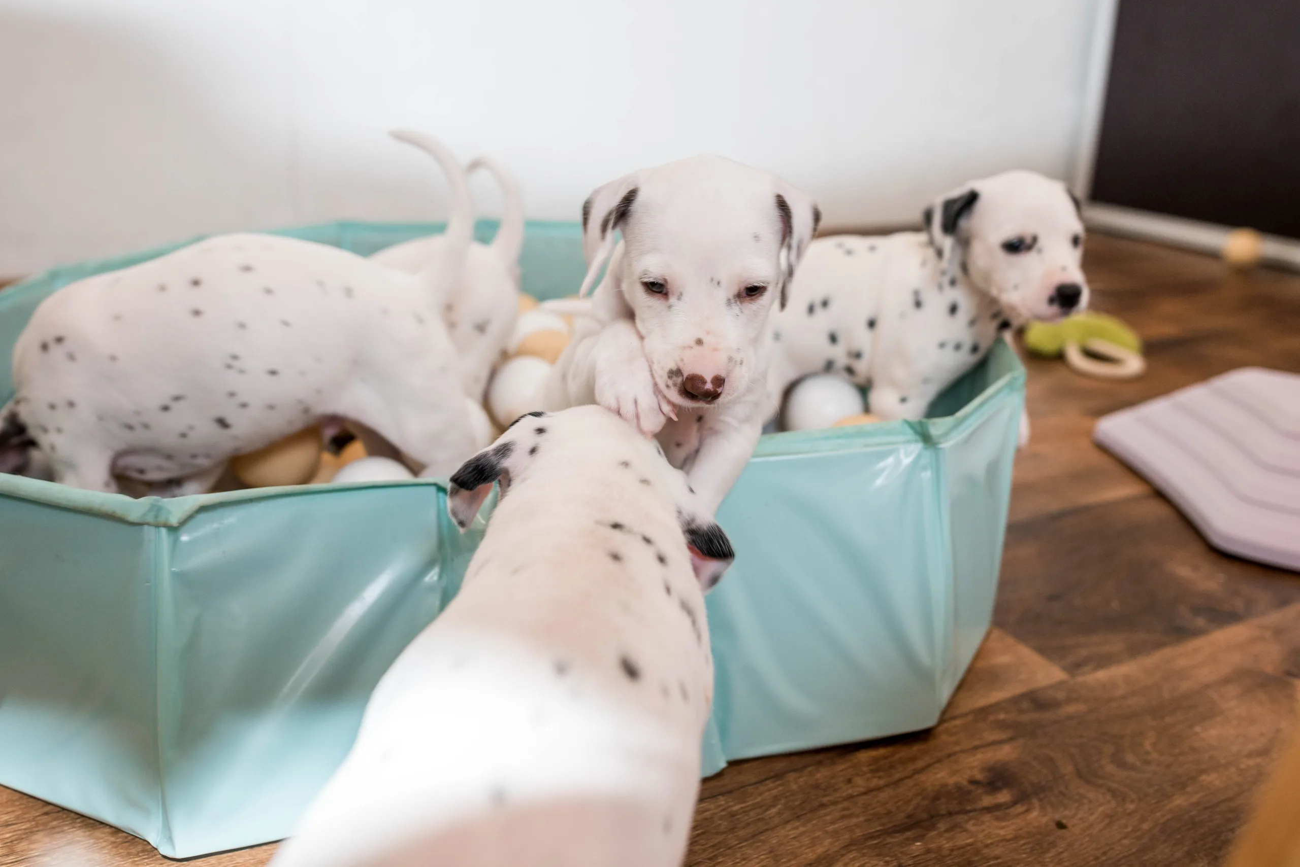 Da haben die Speckies heute also nicht schlecht geguckt, als statt den bereits vertrauten Spielstationen plötzlich ein Bällebad mitten im Raum stand. Ich würde behaupten, spontan haben alle nicht ganz verstanden, wozu das Ding eigentlich dienen sollte, viel lieber wurden kollektiv die Zähnchen daran gewetzt. Verlass war dann natürlich auf meinen Partyhund, Herrn Grün! Und schließlich trauten sich nach und nach alle hinein. Während Herr Orange dieses Mal erstaunlich schnell das Interesse verlor, legte er zum Schluss ordentlich nach und wollte gar nicht mehr herauskommen, so wohl hat er sich darin gefühlt.